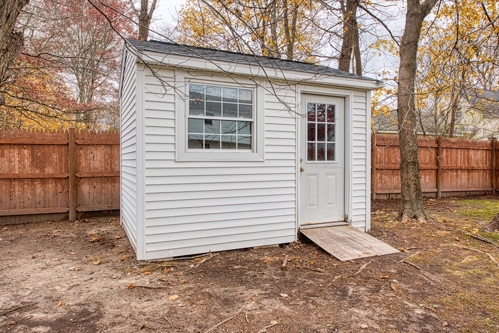 Discover comfort and style in this beautifully maintained raised ranch. Fresh landscaping, crisp white siding, black shutters, and a new front door create standout curb appeal. Inside, a bright living room with vaulted ceilings and hardwood floors flows into an updated kitchen with stainless steel appliances and waterproof LVT flooring. Three spacious bedrooms feature plush new carpeting, while freshly painted trim and ceilings throughout adds a modern touch. Gas heat and central air ensure year-round comfort. Enjoy a large, fully fenced yard with mature trees, perfect for gatherings, pets, or gardening, plus a custom shed for extra storage. The walkout lower level— fully insulated, with laundry hookups and rough plumbing for a second bath—offers endless potential for a family room, office, or in-law suite. Conveniently located on the Whitman line near parks, schools, restaurants, and commuter routes, this move-in ready home blends classic charm with modern updates and room to grow.