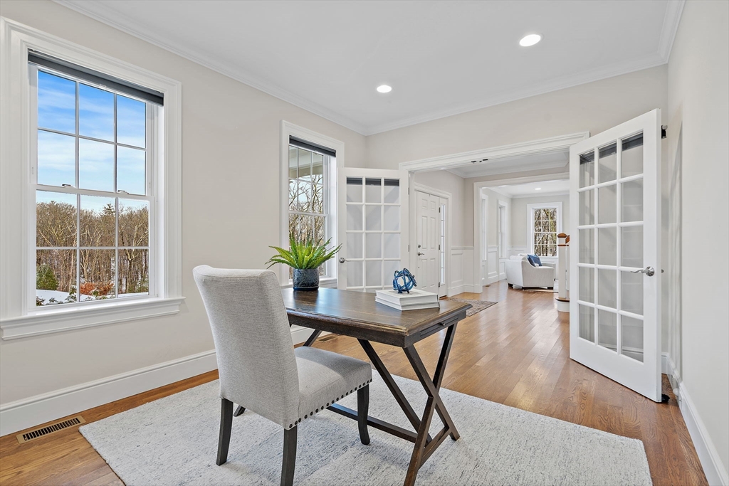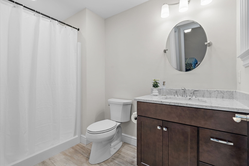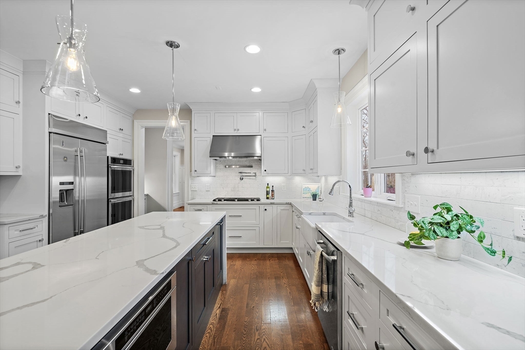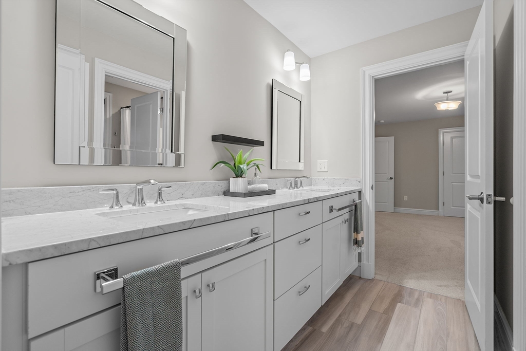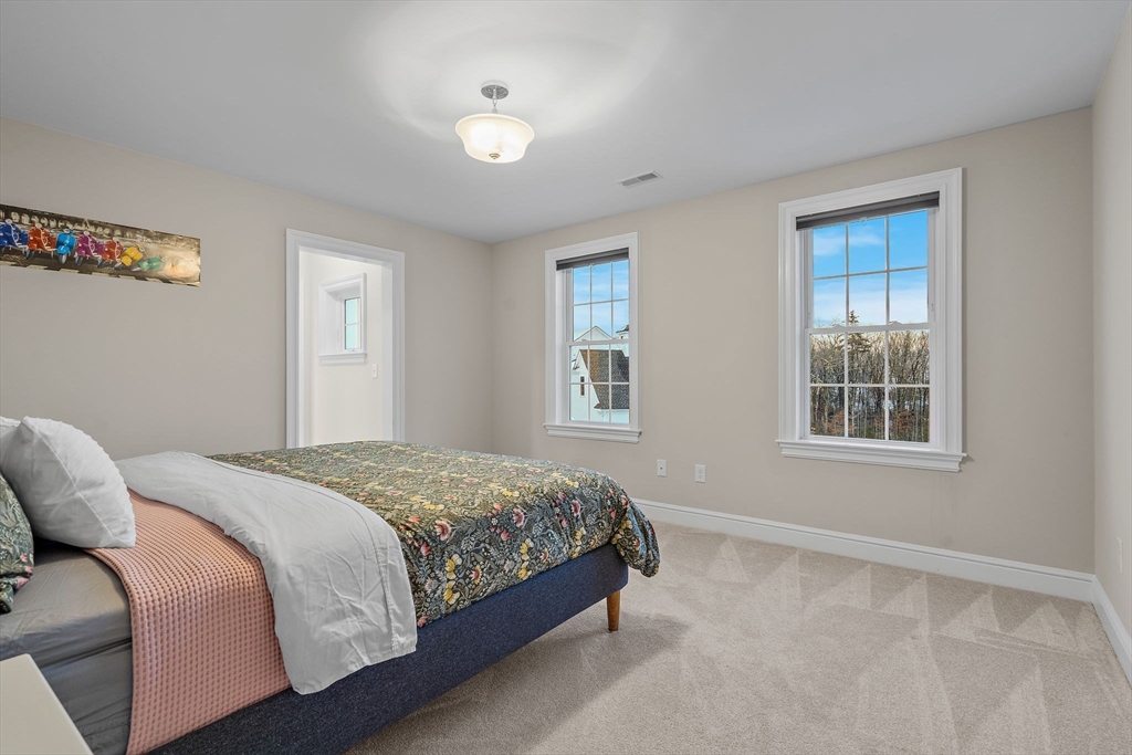 This stunning young Colonial located in the sought after Century Mill Estates neighborhood masterfully blends comfortable & thoughtful design w/luxurious custom architectural details. The enviable chef’s kitchen comes well-appointed w/gleaming white cabinets, spacious waterfall island, quartz counters, gas cooktop, double ovens, beverage center, & walk-in pantry opening to the sun-drenched family room w/cozy gas fireplace.Step outside to the oversized composite deck overlooking the private backyard w/spectacular stone feature. Unwind in the dreamy primary bedroom suite w/generous walk-in closets & indulgent spa bath. 3 additional bedrooms, 2 full bathrooms, laundry room & bonus room complete the 2nd level. The unfinished lower level w/9 feet ceilings offers amazing expansion potential as needs change. Enjoy a home office, beautiful hardwood floors, electric car charger, high efficiency propane heat & an unbeatable location near shopping, major routes & vibrant downtown Hudson!