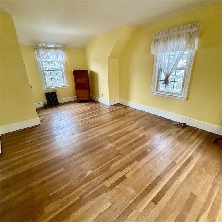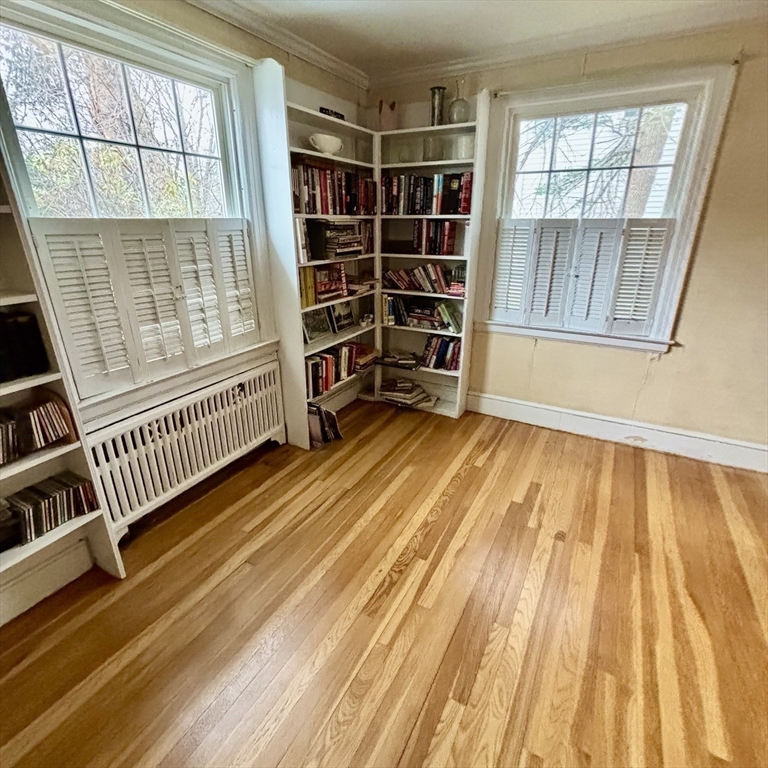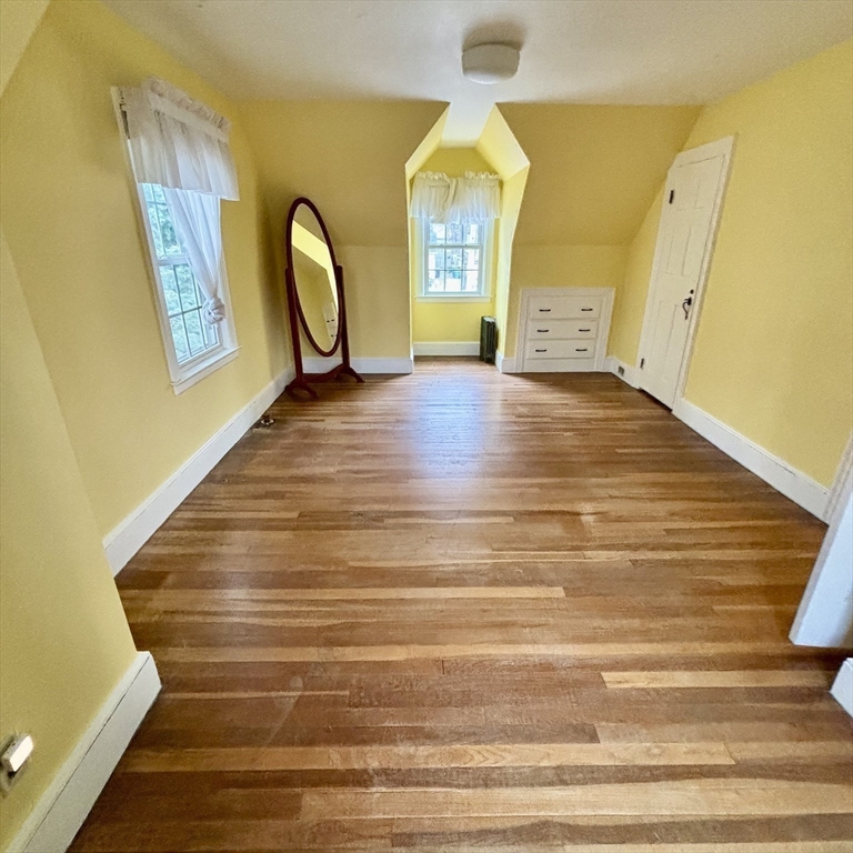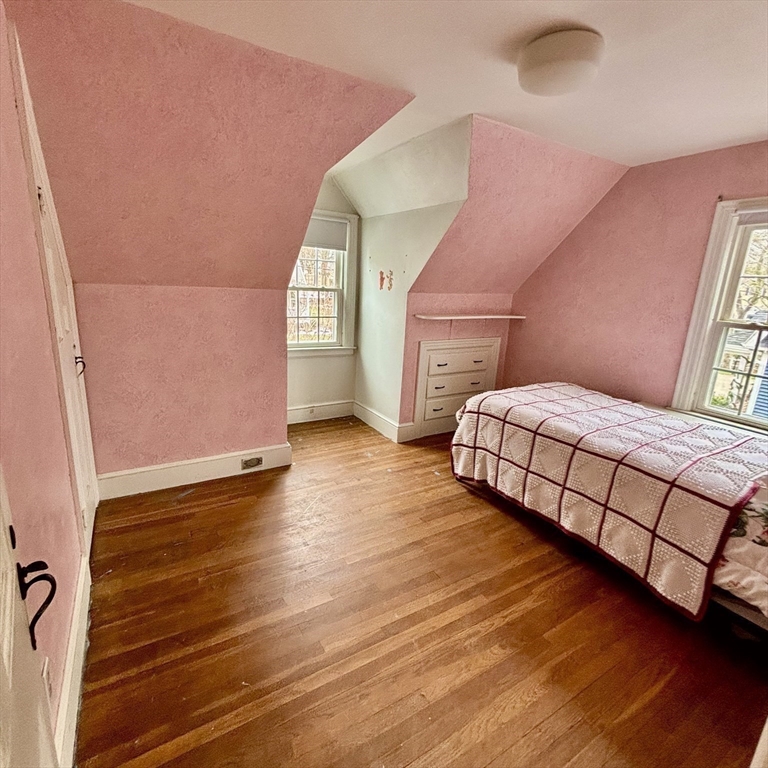 Beautiful Single-family Home with Front Farmers Porch that has been in family since 1972 Three-to-four-bedroom Residence features updates including Windows, Roof & Brick Front & Exterior has been freshly Painted. 1st floor Original Hardwood floors throughout, a Formal Living room & Dining room, has Crown molding w/Dental moldings around the Fireplace. Family Room w/large New Windows with built-in blinds, Skylight, & French doors leading out to Two-tier Deck. Eat-in kitchen w/custom Butcher Block counters w/gas cooking. Half Bathroom. 2nd Floor w/original Hardwood floors has a full Bathroom, Linen Closet, Master bedroom has (his and hers) Closets & additional Built-in Drawers. 2nd Bedroom Skylights & Cedar lined Closet. 3rd Bedroom Closet & additional Built-in Drawers 4th Bedroom is ideal for a nursery or office. One car garage, Stone Wall with Cherry Blossom, Lilac tree, Azaleas, Roses, Hydrangeas & perennials. Walk to Commuter Rail, Close to 93/128