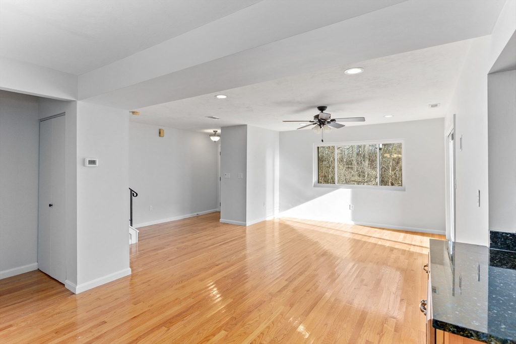 Welcome home to Greenbrook II Condominiums! This beautifully maintained end unit sits in a quiet rear location overlooking woods and a stream. The open floor plan features hardwood floors and excellent natural light from the newer windows and slider. The home offers 2–3 bedrooms, an updated kitchen and baths, and energy-efficient natural gas for heat, hot water, and cooking. Major improvements include a newer furnace, central air, fresh interior paint, and new wall-to-wall carpet on the second level. Enjoy the convenience of an detached one-car garage plus an additional deeded parking space. The private, fully fenced patio with durable PVC fencing is ideal for outdoor relaxation. Greenbrook II amenities include a pool, tennis courts, and clubhouse. Easy access to shopping, dining, public transportation, and commuter routes near the Canton/Stoughton line. Move-in ready and well cared for.
