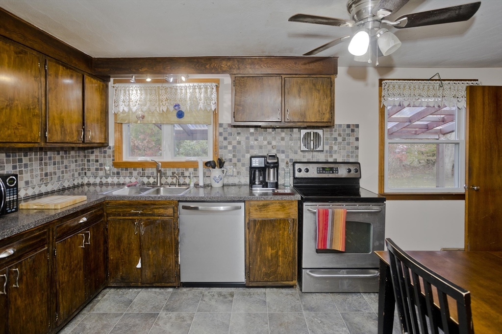 Charming 3-bedroom, 1-bath ranch with wonderful potential! The inviting living room features a cozy fireplace with brick face and wood floors throughout. The full clean basement offers a second wood-burning fireplace and great possibilities for added living space. One bedroom includes a built-in desk, perfect for a home office or study. Each bedroom has large closets and the primary has an overhead fan. Enjoy the spacious, flat backyard with a covered patio (cover just replaced 11/25). Windows were replaced in 2008, and a brand-new dishwasher was installed in November 2025. Since current ownership, the bathroom and kitchen were updated and include all of the stainless steel appliances. This home also includes the washer and dryer! With just a few personal touches, this home can truly shine for its next owner! With a broom closet, pantry and central vac, they don't make homes like this anymore!