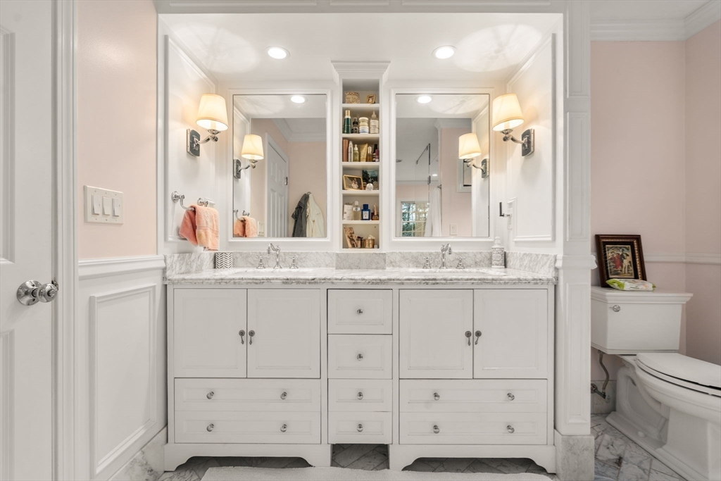 This home is truly a gem, one you will want to live in. A welcoming, warm property features a spectacular custom pool design surrounded by stonework and specimen trees, creating a retreat just outside your back door. Large rooms invite you in, with sunlit afternoons glistening throughout the home. The beauty of this residence lies in its versatile design and layout. A large living room overlooks the back deck and pool, and there is a four-season solarium-like room adjacent. Upstairs, the primary suite features a luxurious Carrera marble bathroom with a walk-in shower and a spacious soaking tub. You will find three additional bedrooms, one of which can be separated into two rooms if needed. There is a laundry room on the second level. The lower level includes a guest suite, a full gym space, ample storage, and a separate entrance. Beyond the pool and up the pathway is a lush green lawn and a storage shed with electricity. A rare find in a highly desired neighborhood. Appointment only!