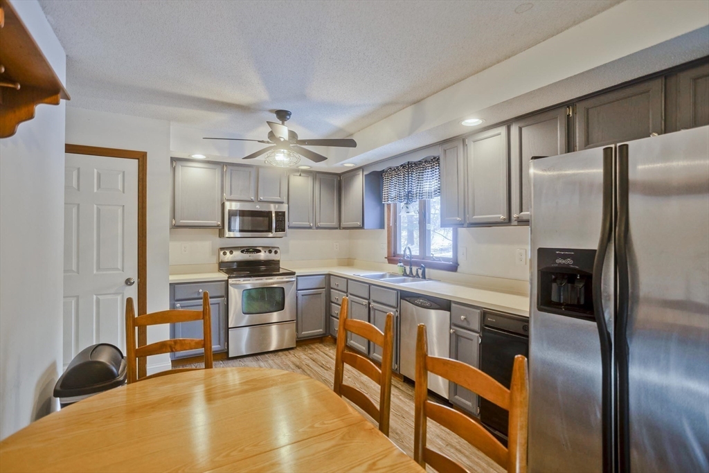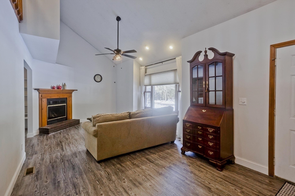Easy, Elegant and Quiet Condo Living in a Beautiful Community! Step into this welcoming 2-bedroom, 1.5-bath townhouse-style condo, perfectly designed for comfort, convenience, and low-maintenance living. A bright, open-concept living greets you with soaring cathedral ceilings, a cozy fireplace, and an expansive picture window that floods the space with natural light. Spacious dining area that flows seamlessly into the kitchen and/or living room—ideal for everyday living or entertaining guests. Upstairs, the primary bedroom offers direct access to the full bath, creating an effortless ensuite feel. The second bedroom is perfectly sized for guests, an office, or a hobby room. You’ll love the partial finished basement, offering endless possibilities.Enjoy direct underground access to your garage, keeping you dry and comfortable in any weather. This well-maintained community shines with serene, park-like surroundings and fantastic amenities.