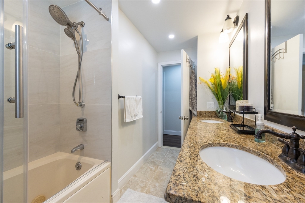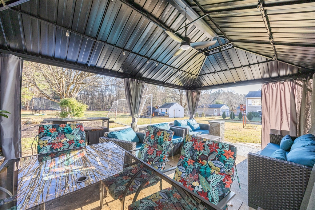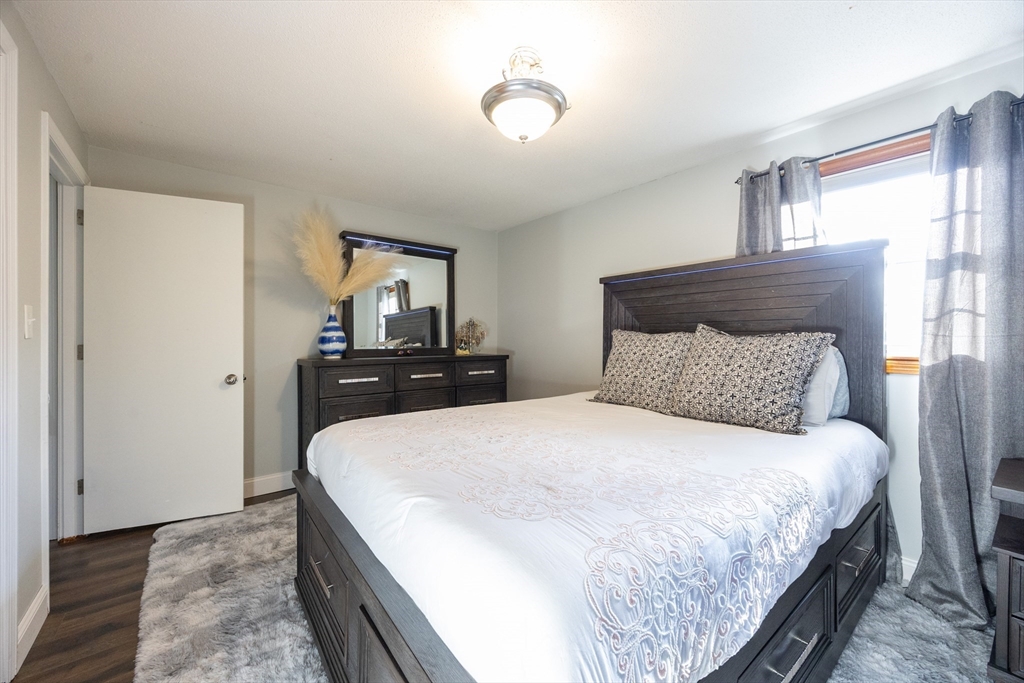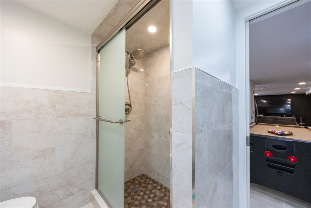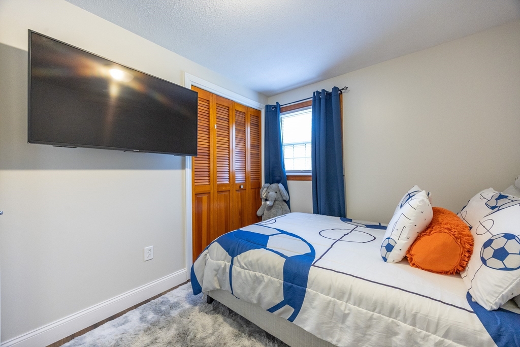 This beautifully renovated home blends modern style with everyday comfort on a 0.85-acre lot in a highly sought-after neighborhood. Large windows fill the home with natural light and offer scenic views of the expansive yard. The thoughtfully designed kitchen features light-blue cabinetry, quartz countertops, beautiful backsplash, and energy-efficient stainless-steel appliances, opening seamlessly to the dining area and a generous living/family room with a cozy wood-burning fireplace. The main level includes a spacious primary bedroom, two additional bedrooms, and a full bath. The finished walk-out lower level adds valuable living space with a game room, guest bedroom, gym, Laundry and another full bath. Enjoy an enclosed porch and spacious composite deck, Outside a huge flat backyard, a large shed, and a charming enclosed stone patio perfect for gatherings or relaxing. Move-in ready, this home offers exceptional updates, space, and style.