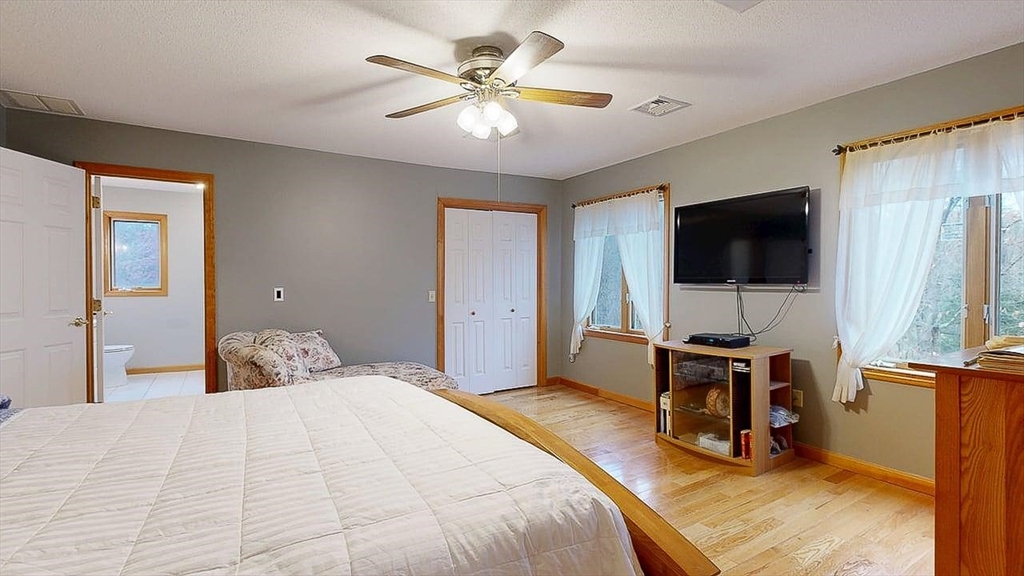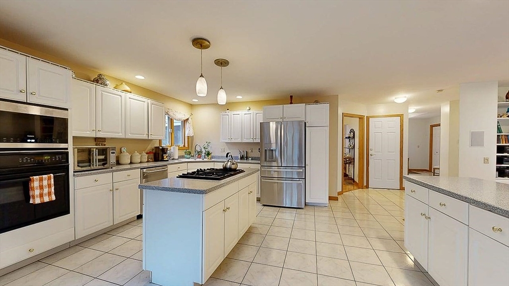 Contemporary beauty with an open floor plan and great yard in desirable Sheffield Estates in Belchertown! One owner well maintained home. The spacious main level features hardwood and tile flooring, a lovely entryway leading into the large living room, dining area, and a wonderful open kitchen with an abundance of cabinets and counterspace - a cook's dream which is open to the family room with gas fireplace and access to the deck! Large windows throughout the home let in an abundance of light. Enjoy indoor-outdoor living with a wrap-around deck and screened porch, overlook a level yard, perfect for relaxing or entertaining. Three bedrooms, two full and two half baths offer comfort and convenience. The walk-out basement includes a large, finished bonus room ideal for a family room, office, or gym. Lovely landscaping, a quiet street, and a peaceful setting complete this move-in-ready home.