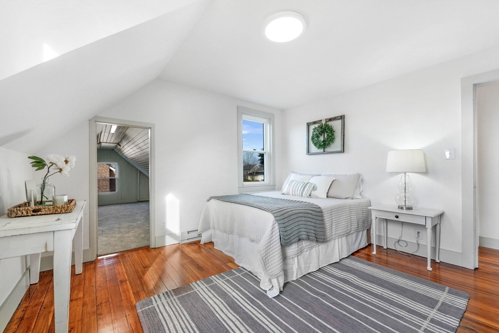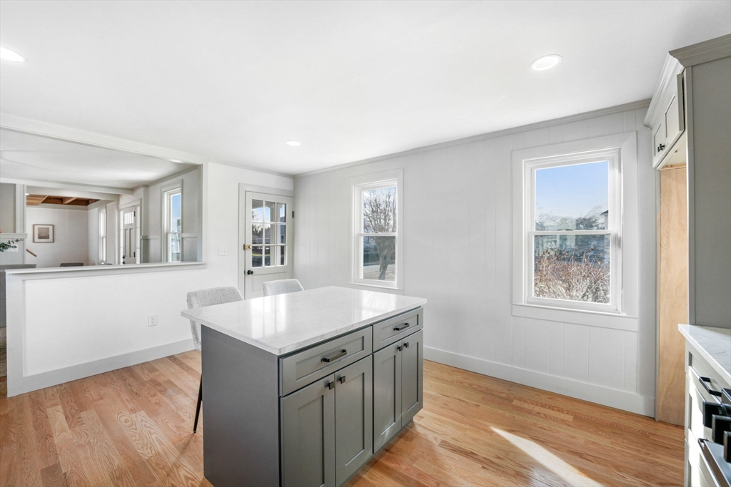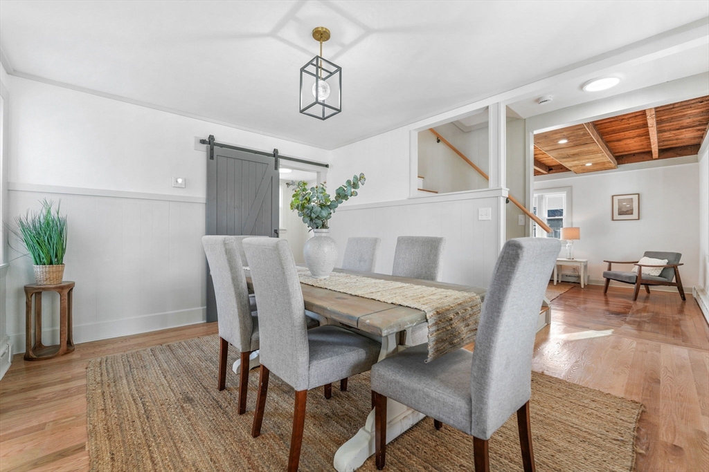 This updated three bedroom, two bath home with large garage is located in the quaint town center and just steps from the bike path, marina, and historic Fort Phoenix. A welcoming covered farmers porch leads inside to hardwood floors, a spacious living room with a large picture window, abundant natural light, exposed wood ceilings, and a cozy fireplace. The fully remodeled open kitchen features quartz countertops, an island perfect for entertaining, and access to the back patio. Additional highlights include a formal dining room, first-floor laundry, two newly renovated bathrooms, and three bedrooms with an abundance of storage. New windows, newer roof, heating system, plumbing, electric, siding, flooring and garage door with electric opener all complete this beautifully updated property. This charming home blends old character with modern updates as well as close proximity where you can enjoy tennis courts, beaches, and scenic walking trails.