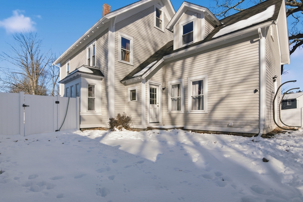 Welcoming living space featuring recessed lighting and beautiful wide-plank flooring sets the tone for this charming home. The spacious kitchen offers stainless steel appliances, ample cabinet space, a center island with plenty of countertop room and additional seating, and a walk-in pantry closet. The wide-plank flooring flows seamlessly throughout the formal dining room and family room. A convenient half bath and first-floor laundry hookups complete the main level. Head to the second level to find three bedrooms, an office space, and a full bath. The walk-up attic provides even more versatility with a finished bonus room complete with a walk-in closet. Outside, enjoy a fully fenced-in yard, storage shed, and paved driveway. Experience the ease of condo living with the comfort and privacy of a detached home!