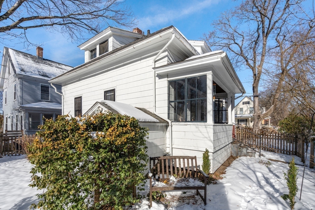 Discover the perfect blend of historic charm and modern convenience at 24 Pine St, a delightful chalet style bungalow on a picturesque corner lot in Greenfield! This 3 bed, 2 bath home offers flexible main level living with a spacious eat in kitchen, formal dining area, and cozy living room with wood stove. A sunny primary bedroom and full bath with a classic claw foot tub complete the 1st floor, where oversized windows bring abundant natural light highlighting the beautiful hardwood floors and trim throughout the main level. Upstairs, 2 generously sized bedrooms plus an unfinished attic space provide exciting opportunity for expansion or creative use. Enjoy a large three season front porch/sunroom, a covered kitchen porch, and a serene, yard with iconic picket fencing and mature plantings along a quiet, dead end street. A partially finished basement with 2nd full bath offers even more possibilities. Come experience the timeless character and potential of this charming Greenfield gem!