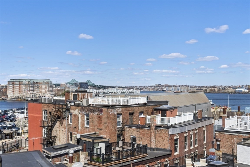 Located at 8 Battery Street, in Boston's desirable North End, this condominium offers a unique opportunity to own a piece of history in a vibrant city setting. Situated on the second floor of a building dating back to 1900, this residence presents an inviting atmosphere. The living area, encompassing 560 square feet, featuring hardwood floors and recessed lighting, provides a comfortable space to unwind or entertain. Imagine relaxing in this well-proportioned room, bathed in natural light, as you plan your next city adventure. The galley style kitchen with breakfast bar offers new Samsung stainless steel appliances. A spacious bedroom, with generous closet space, provides a peaceful retreat. The property features a single full, recently renovated bathroom, thoughtfully designed with European touches. Step outside onto the expansive roof deck and discover an outdoor dining area, ideal for savoring delicious meals while enjoying the Boston Harbor and city skyline views. Sorry, no pets.