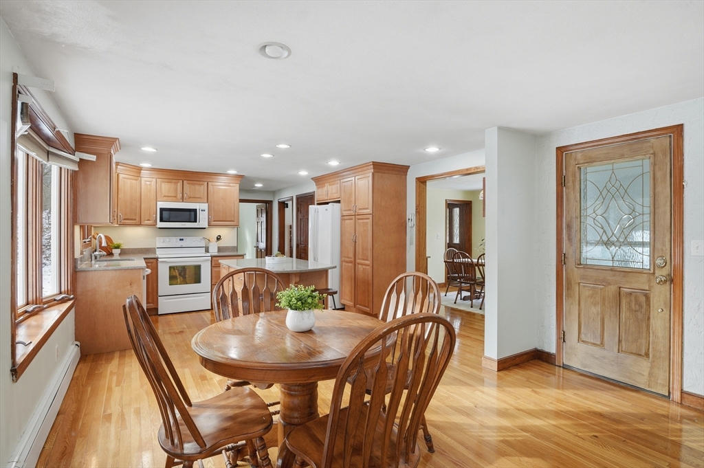 This impeccably maintained, quality built Gambrel Cape boasts beautiful hardwood floors throughout. A delightful screened-in porch welcomes you. Inside, find spacious living room w/wood stove and quaint sitting room w/charming fireplace. Gleaming hardwood floors continue into the sun-filled family room, featuring a sliding door to the private, level backyard.The renovated dine-in kitchen offers a charming bow window & center island, flowing seamlessly into the formal dining room. The first floor includes a bedroom or home office and half bath.Upstairs: three generously sized bedrooms and a full bath. Highlights: updated windows, heating system, durable vinyl siding and a partially finished basement. Enjoy the lovely backyard with two useful sheds and two car garage. Ideally located near scenic Minute Man Park for exceptional year-round recreation with walking trails, fishing & park benches to enjoy the water view! Don't miss this exceptional opportunity to live in a desirable community