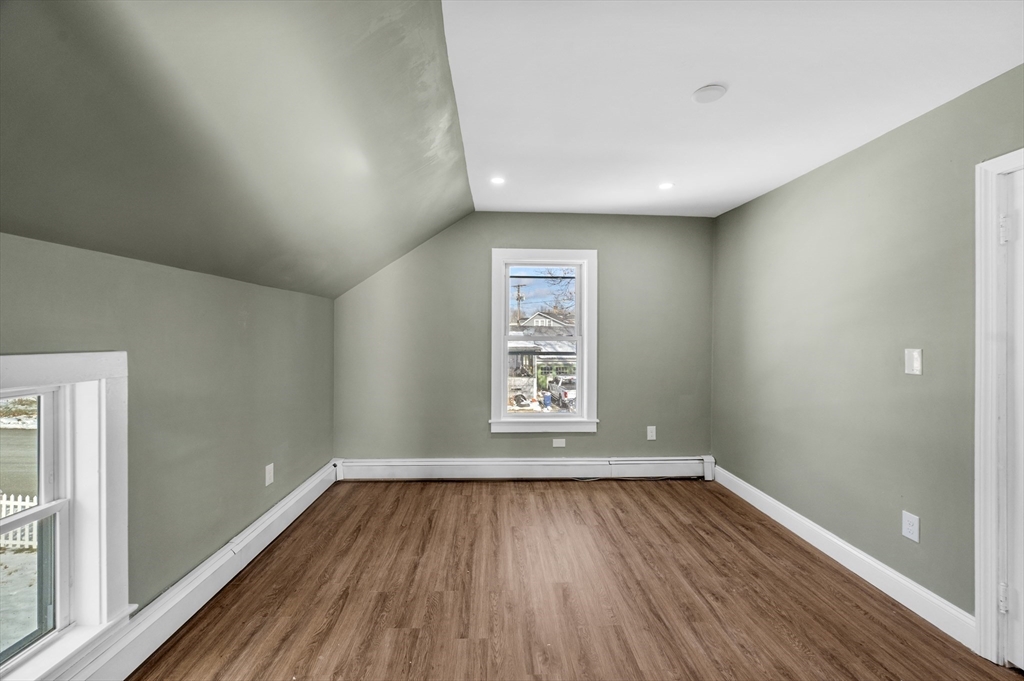 Welcome to this beautifully renovated 4-bedroom, 2-bath home with a 2-car garage, perfectly situated on a spacious double corner lot in a quiet neighborhood. Step inside to an updated kitchen featuring granite countertops, brand-new stainless steel appliances, new cabinets, and a stylish tile backsplash. The home is enhanced with recessed lighting and new laminate flooring throughout. The first floor offers an open-concept living and dining area, a versatile bedroom or home office, a fully enclosed porch, and a modern full bath with a tiled shower. Upstairs, you’ll find three generous bedrooms and an additional full bath with tiled shower complete with laundry for added convenience. Relax on the large front porch or enjoy the expansive backyard—ideal for gatherings, play, or simply unwinding. Other updates include all new electric, new hot water heater, new plumbing, freshly painted exterior and more! Schedule your showing today—don’t miss out on this move-in ready home!