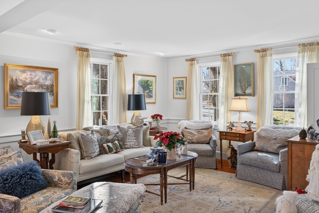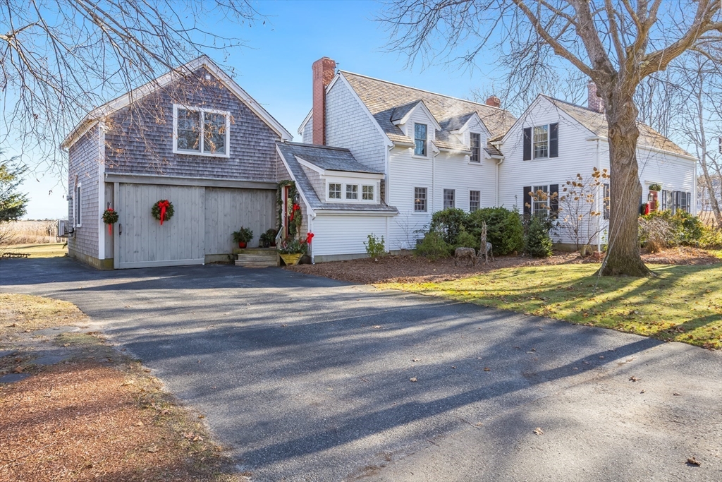 Views - Views - Views - expansive views of the saltwater tidal marsh, sand dunes at Town Neck Beach and Cape Cod Bay. A treasured gem along the coast in Historic Sandwich Village near the famous Boardwalk and Main Street. Built 1856, expanded, and recently renovated with attention to detail, this Colonial is filled with architectural features that combine yesteryear's nostalgia and today's conveniences. Stunning views from the chef's kitchen with a wall of glass, cozy fireplace and dining area with slider to deck. The living room boasts a gas fireplace, slider to deck, built-ins and plenty of room to gather. A custom staircase leads to four bedrooms - each with it's own character - the luxurious primary en-suite has cathedral ceiling, gas fireplace, slider to balcony to experience ever changing views, and private bath. The family room over the garage is an ideal retreat with cathedral beamed ceiling, half bath and slider to another balcony to capture the views. A rare opportunity!