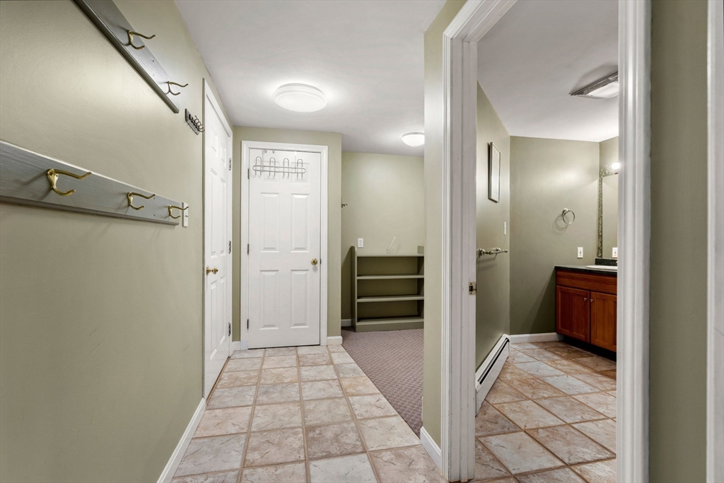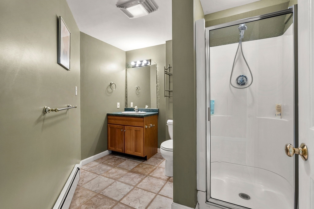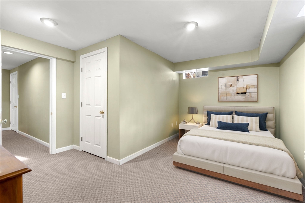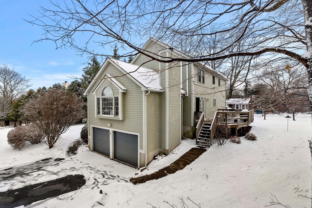 Beautifully maintained Colonial in a coveted cul-de-sac neighborhood within the Pentucket school district. This 4-bed, 3.5-bath home offers ~3,000 sqft of flexible living space, including a sun-filled family room w/ vaulted ceilings, picture windows and a marble fireplace. The kitchen features stainless appliances, black leathered granite countertops, pantry and breakfast nook w/ exterior deck access. The first floor also has a large dining room, additional living room and a half bathroom w/ laundry. Upstairs are four hardwood-floored bedrooms, including a vaulted primary suite w/ walk-in closet and private bath. The finished lower level functions as an in-law/guest suite w/ bedroom, full bath, and home office. Major updates include energy-efficient leased solar panels, 2018 roof replacement, Mitsubishi mini-splits for heat & AC, attic insulation, and 2023 heat-pump hot water heater. Set on a private 0.71-acre lot w/ 2 detached sheds, a chicken coop, plus 2-car garage & ample parking.