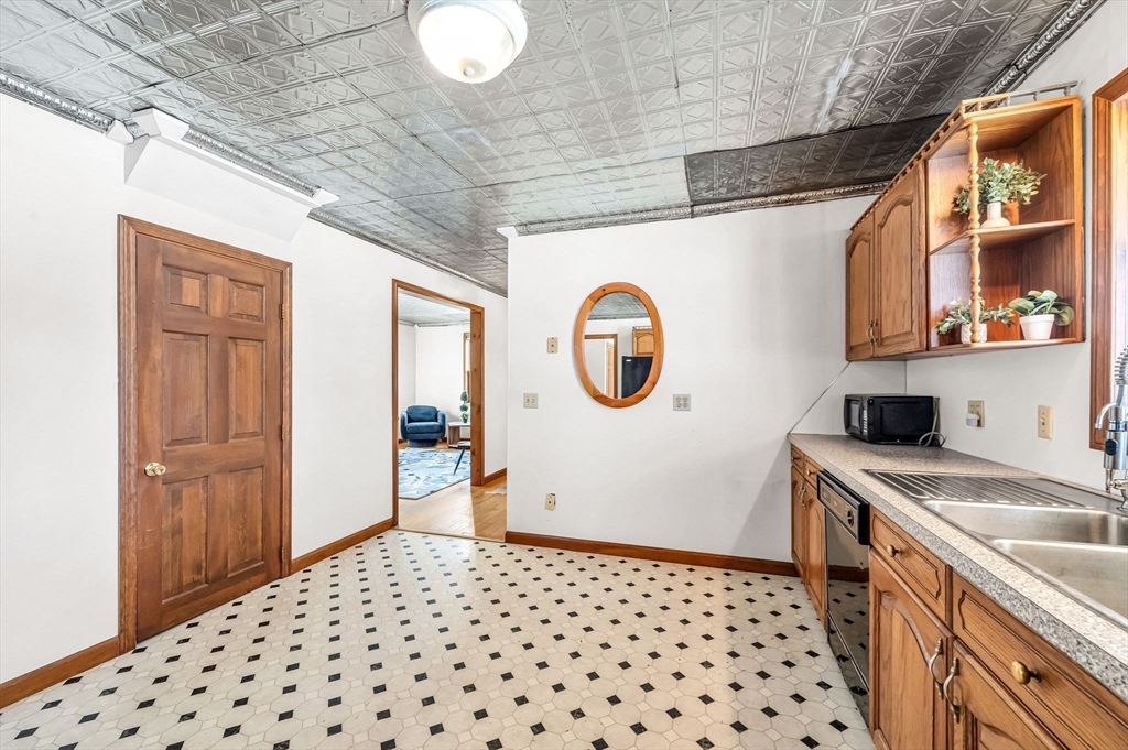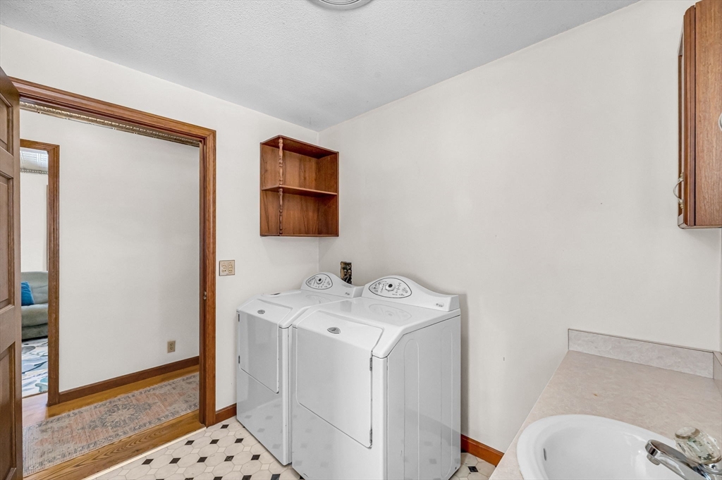 Conveniently located in Westfield near shops, schools, and recreation, this home offers over 1,600 square feet of above-ground living space, plus a partially finished basement with a wood-burning stove to help supplement the heat. The kitchen is spacious and ready for your updates, with plenty of potential to become the heart of the home. The adjoining dining and living rooms feature hardwood floors and create an easy flow—ideal for holiday gatherings and everyday living. A first-floor bedroom provides flexible use as a home office, and a full bath with laundry completes the main level. Upstairs, the primary bedroom opens to a private deck where you can enjoy morning coffee or unwind with sunset views. Both second-floor bedrooms offer generous closet space and wall-to-wall carpeting. The basement adds even more versatility, with ample room for a game room, media space, or additional office—plus the warmth and savings of a wood stove. Priced to sell! Title 5 Passed.