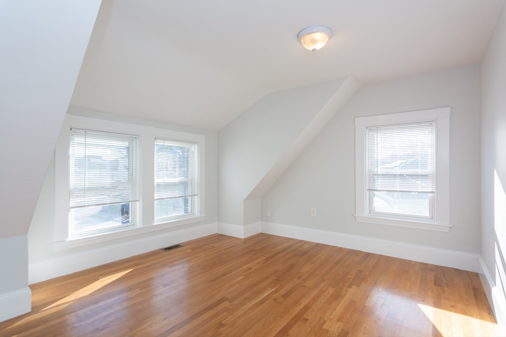 Move-in ready, this updated 3-story townhouse-style condo in a two-unit duplex offers worry-free living in highly desirable Newton Corner. Fully renovated in 2018 with major upgrades to HVAC, electrical, and plumbing. In 2025, the entire interior and exterior were professionally repainted, delivering years of low-maintenance ownership. Interiors feature hardwood floors throughout and a rare layout with two staircases for excellent flow and privacy. The main level includes a sun-filled living room with fireplace, large foyer, open dining room with high ceilings, and an updated kitchen with granite countertops, stainless steel appliances, tile backsplash, recessed lighting, in-unit laundry, and a 3/4 bath. Upper levels offer five well-proportioned bedrooms, 2 full baths, and a private deck. Semi-finished basement provides ample storage. Central air, off-street parking. No condo fee (shared insurance and landscaping only). Motivated seller—do not miss this opportunity.