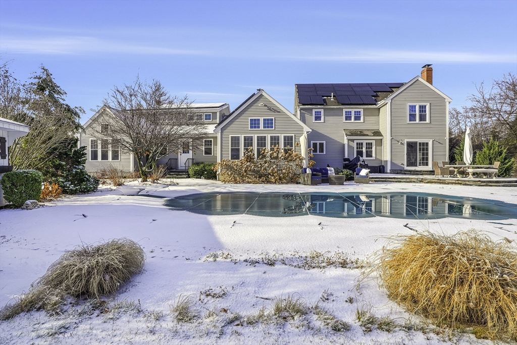 Refined elegance meets resort living. Set in a highly sought-after neighborhood abutting Lake Whitehall, this exceptional residence blends luxury, comfort & lifestyle. A welcoming farmer’s porch w mahogany decking introduces the beautifully designed kitchen featuring mission-style cabinetry, new quartz countertops & backsplash & new flooring - flowing seamlessly into expansive dining & family rooms w walls of windows, wet bar & wood stove—ideal for entertaining & game days. First floor also offers a serene bedroom suite, intimate sitting areas & private home office w built-ins. Upstairs offers 3-5 spacious bedrooms & two freshly renovated spa-inspired baths. An 800 sq. ft. bonus room above 3-car garage provides flexible space for guests, au-pair, fitness, or media. Enjoy a private oasis w a heated inground pool, new travertine patios & a flat backyard! Newer septic, heat pumps, roof & $60K owned solar system! Top ranked schools, I495/90, commuter rail, trails & dog park nearby!