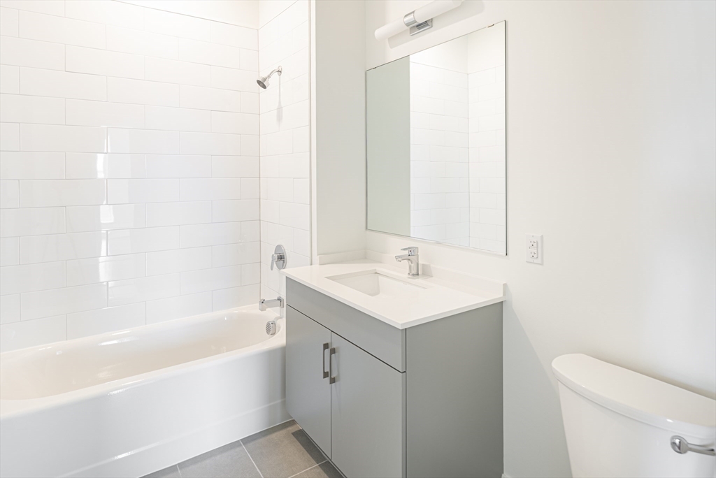 2BR/2BA with 1 garage space at VITA overlooking McBride Street, a quiet side street. The view stretches across the park next door to the city skyline (visible when the trees are not in full bloom). Large, spacious floor plan with every sf used purposefully. This one has all the upgrades--hardwood floors throughout, kitchen island, tile kitchen backsplash, W/D, SS appliances, quartz countertops, central heat and A/C, on-demand hot water, floor plan with bedrooms and bathrooms on opposite sides of the living area. Retail space includes Third Cliff Bakery, Pure Dental, Beth Israel Primary Care offices, a bank, and a Planet Fitness. The Beth Israel offices are what's underneath this unit (very quiet neighbor).