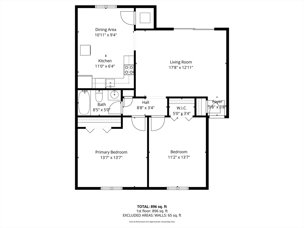建筑面积1,038 平方英尺 (约 96 平方米)
