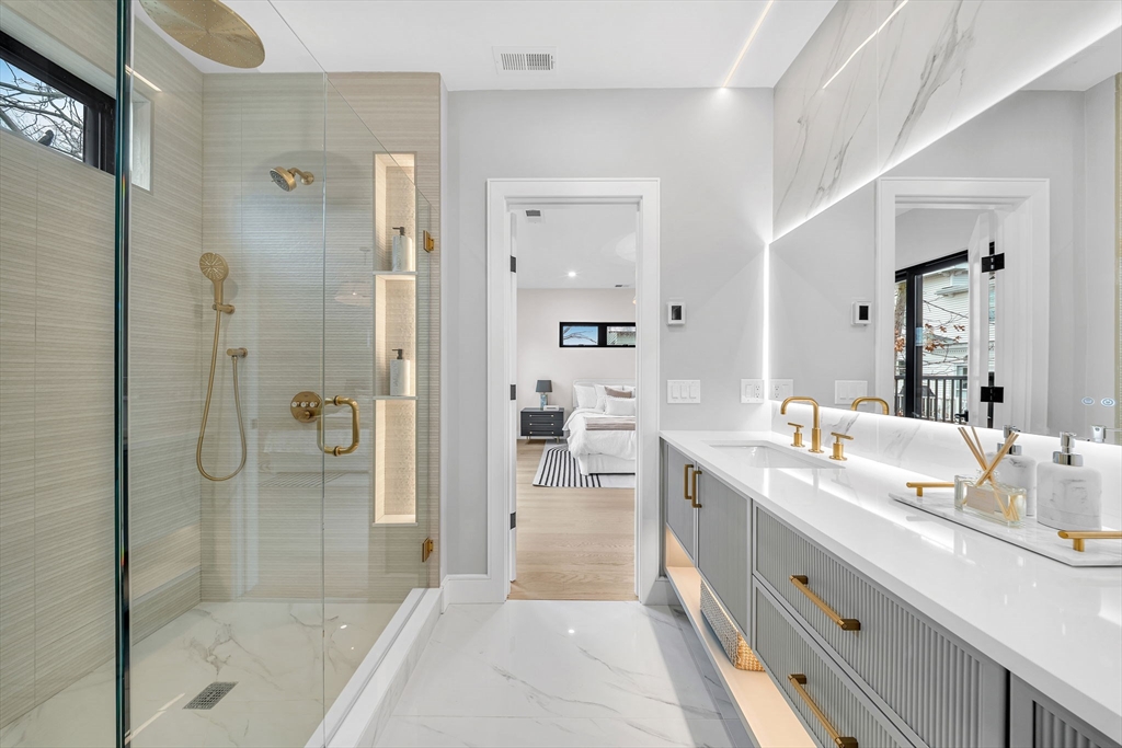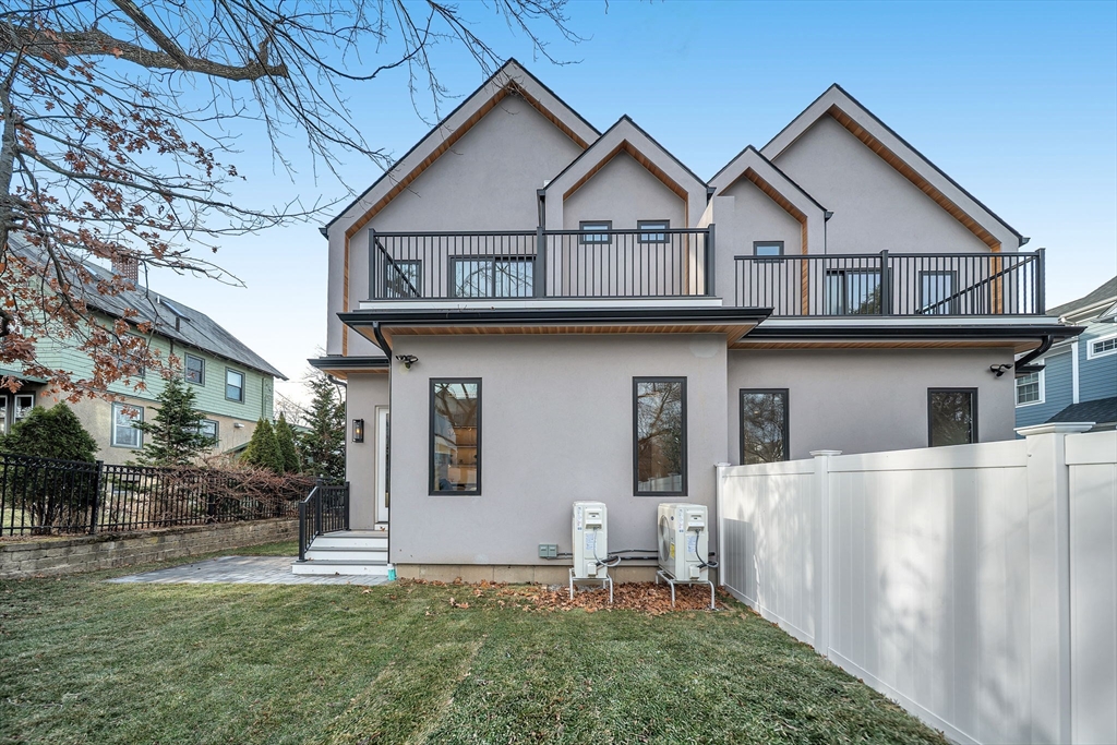 Welcome to the Waban. New construction townhouse that lives like a single family home. The 1st floor has an open living and dining space with designer kitchen fitted with custom cabinetry, Miele appliances and chevron hardwood floor. The living area opens to the back stone paved patio and fenced in yard. The 2nd floor has 3 spacious bedrooms with a primary suite with walk-in closet. The 4th level is a spacious loft, ideal as an office or playroom, complete with a full bathroom. The lower level has tall ceilings, a family room with fireplace, custom wetbar and beverage center and 1/2 bath which makes movie night ideal. In addition each unit will enjoy parking for 3 cars and located directly behind the newly renovated Lincoln Elliot elementary school and playground. Enjoy the proximity restaurants, public transportion, parks and convenient to the highway (Mass Pike).