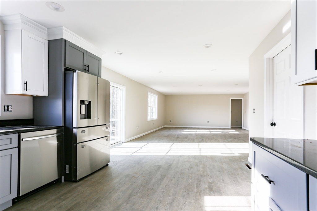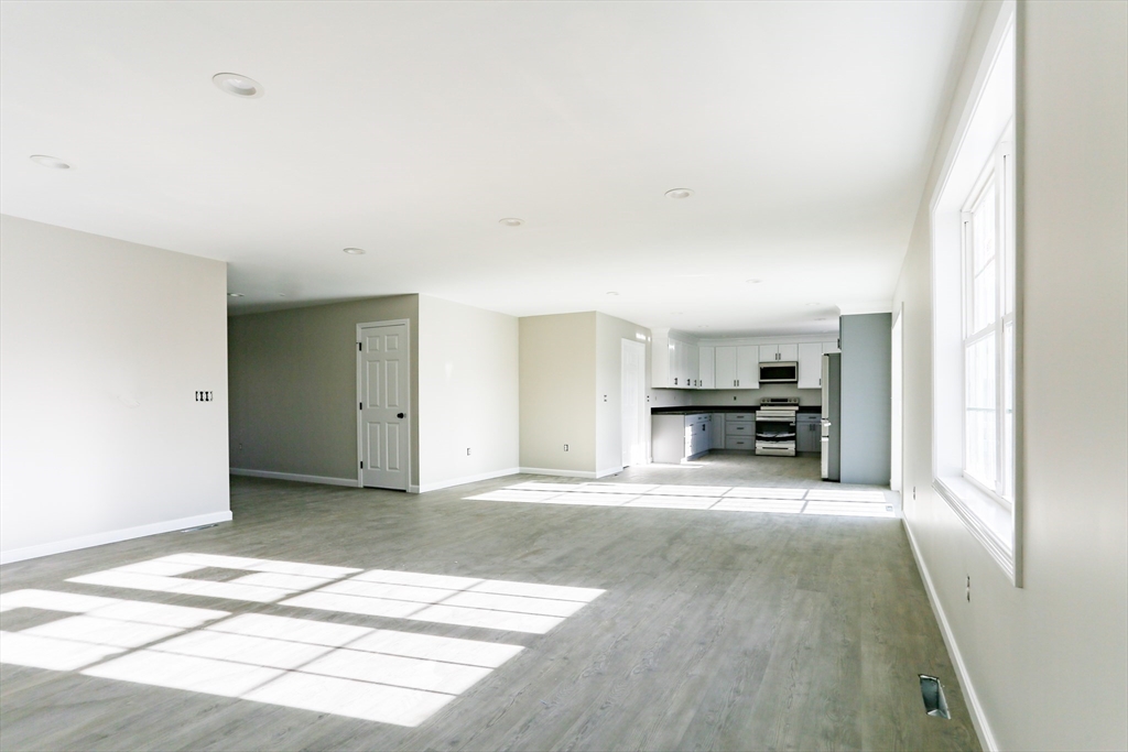 This impressive, newly built ranch offers easy single-level living with modern finishes throughout. A welcoming front porch and two-car garage lead to an open-concept layout featuring a fully applianced kitchen with granite countertops, dining area, and spacious living room ideal for entertaining. A slider opens to a 12x16 composite deck overlooking the backyard. The primary suite includes a full bath with double sinks and a walk-in closet, plus two additional bedrooms and a second full bath. A practical mudroom with washer and dryer hookups and ample storage closets adds everyday functionality. Central air provides added comfort during warmer months. The walkout basement features high ceilings and offers excellent potential for future finished space such as an ADU, home office, gym, or additional living area.