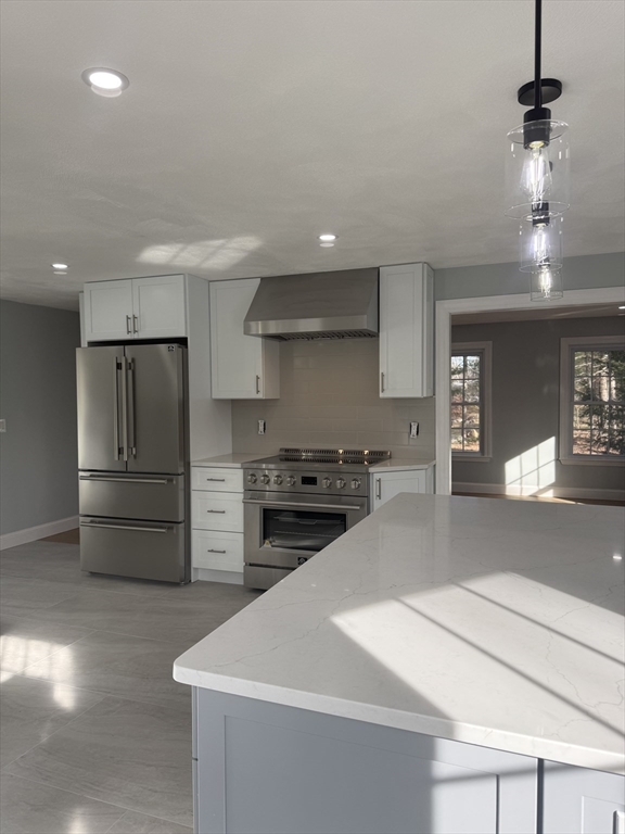 PROFESSIONAL PHOTOS TO COME! Introducing a stunning 4 bedroom, 2.5 bathroom modern colonial sitting on .71 acres in desirable Walpole. Completely renovated with a new roof, "quiet-open" garage doors, sidiing , windows stone veneer and landscaping. Featuring an open main leveel with a chef's kitchen: hardwood cabinets, Forno appliances, stone countertops and a center island. Spaciouos dining and living areas showcase European hardwood wide plank flooring. Upstairs the primary suite includes a walk in closet and full bath, complemented by three adiitional well-sized bedrooms and a modern full bath. The finished basement adds spaces for endless opporunities. Private backyard for entertaining an conveniently located near major routes a rare opportunity to own nearly new construction! Private showings start 12/26