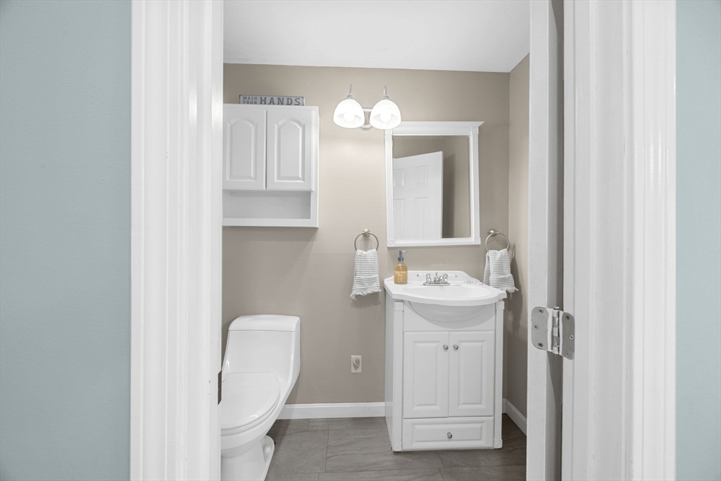 Experience the perfect blend of modern elegance and coastal charm in this stunning 2,000 sq. ft. Contemporary Cape. Tucked away on a quiet cul-de-sac in the Long Pond Estates community, this home features deeded beach rights to Long Pond and a thoughtfully updated open-concept layout. The heart of the home is a renovated kitchen, featuring premium cabinetry, sleek granite countertops with a slider to back deck. Just beyond, the expansive family room impresses with soaring cathedral ceilings and a newly renovated gas fireplace, creating a warm centerpiece for gatherings. The primary first-floor suite serves as a private retreat, complete with cathedral ceilings, a spacious walk-in closet, and a stylishly updated en-suite bath. The second level offers two generously sized bedrooms and a beautifully renovated full bathroom, providing ample space and privacy for family or guests. Bonus room in basement for man cave/playroom. Updates include new roof(2017), HVAC (2015), water heater(2022)