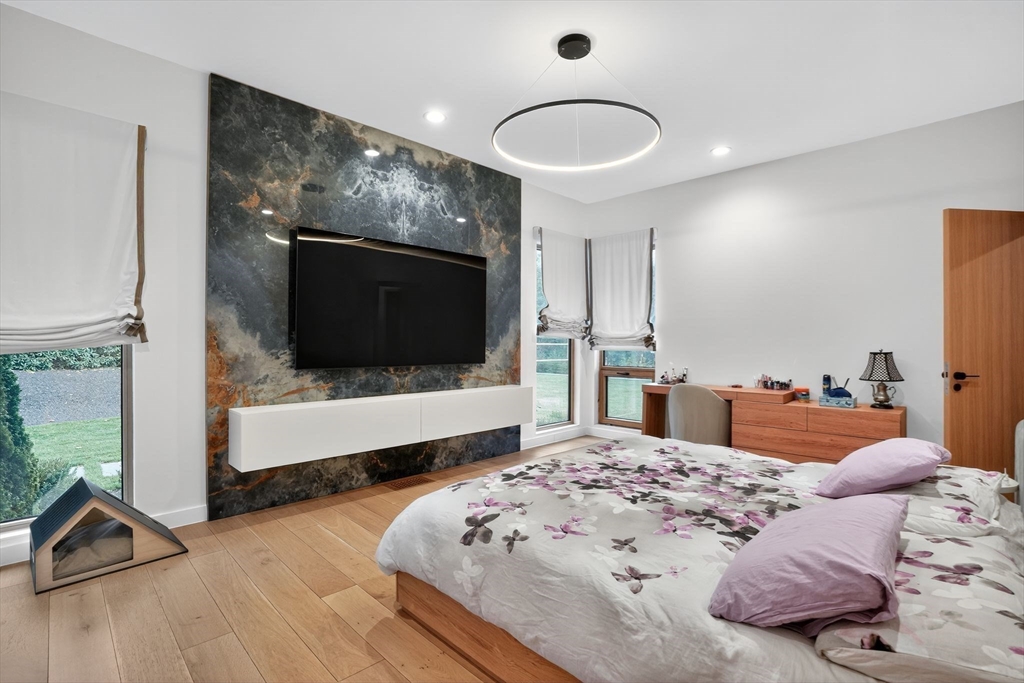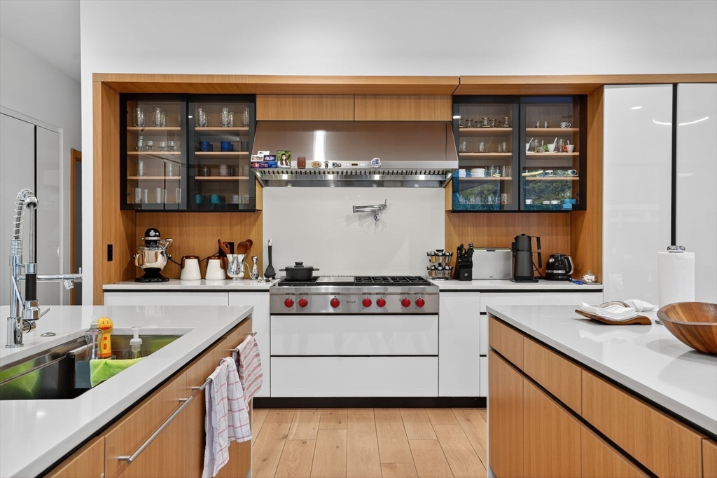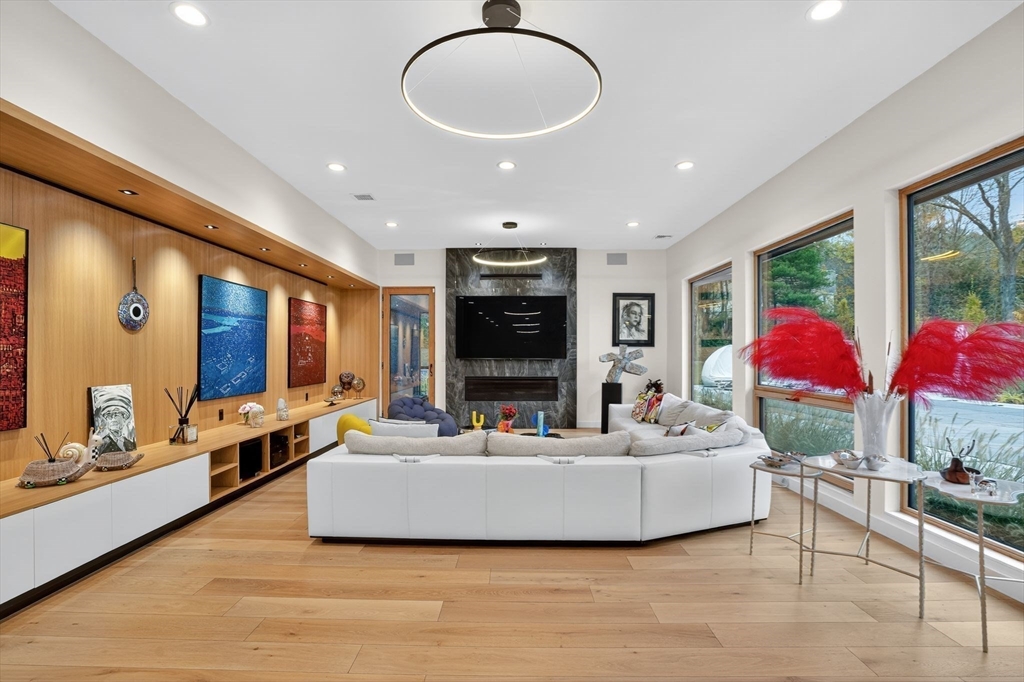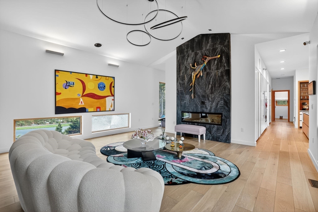 Architecturally striking Prairie-style contemporary custom built with a refined focus on nature, craftsmanship, and simplicity. South-facing open layout with walls of glass overlooking professionally designed grounds and serene private setting. Heated pool with automatic cover and integrated jacuzzi, with pool and landscape irrigation supplied by a private well. German-engineered windows offer exceptional thermal performance. Home features high-performance heat pump heating, 400-amp electrical service, and an automatic natural gas–powered generator. Motorized blinds throughout. Dramatic kitchen and great room with lacquered cabinetry, dual oversized islands, premium appliances, and gas fireplace. Spa-like primary baths with heated floors and rainfall showers. Finished lower level offers generous bedroom, fitness, and entertaining spaces. Heated three-car garage. Covered porch and 1.39-acre lot with overlook the Japanese inspired gardens and private grounds.