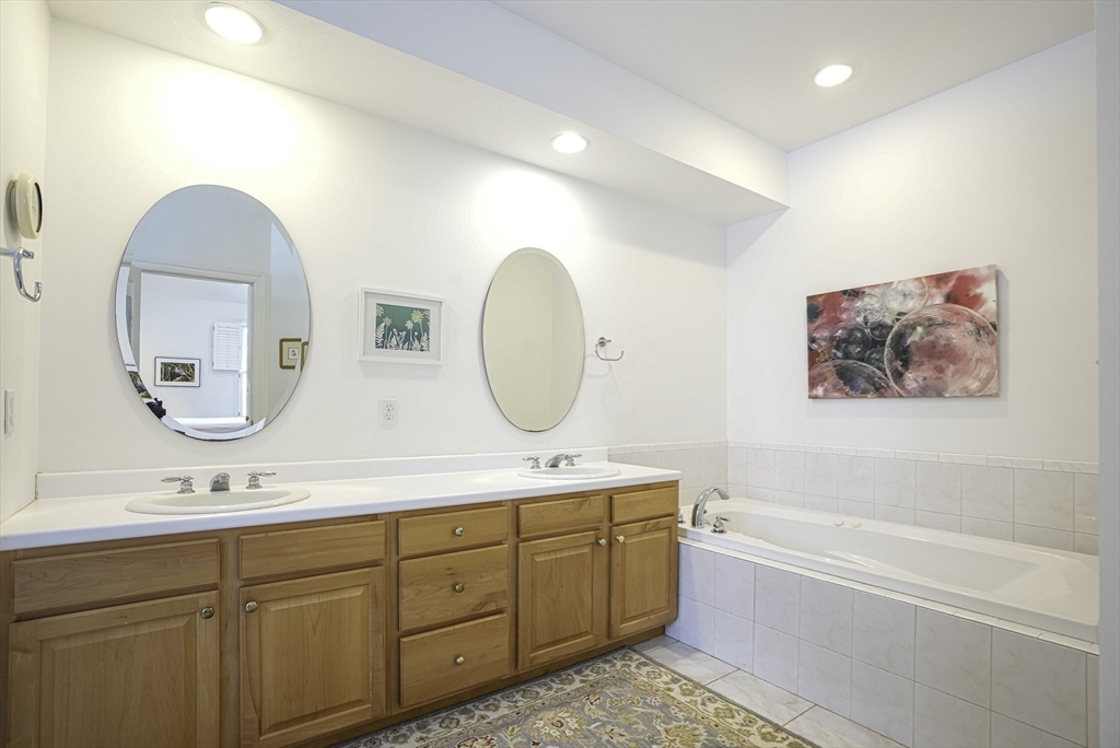 Over $100,000 in upgrades since 2023! Move right in and enjoy the beauty of this 55+ enclave nestled beside woodlands w/ abundant walking trails. Upgrades feature fresh paint throughout, flooring, kitchen, heating/AC, lighting, hot water system and more. This oversized unit w/flexible floor plan (the dining area can be in the great room), while the 'dining room' can serve as an office, den, or whatever. The eat-in kitchen boasts upscale cabinetry, stainless steel appliances, double ovens, quartz countertops, new tile flooring, and a coffee station. The fabulous mudroom provides access to the deck, guest bath, and laundry room w/utility sink. The cathedral family room with a gas fireplace and large windows leads to the master bedroom and an oversized ensuite with a whirlpool tub and shower. Upstairs is perfect for guests, featuring a full bath, sitting area, and guest bedroom. The 2-car garage includes built-ins, and the expansive basement is plumbed for a future bath.