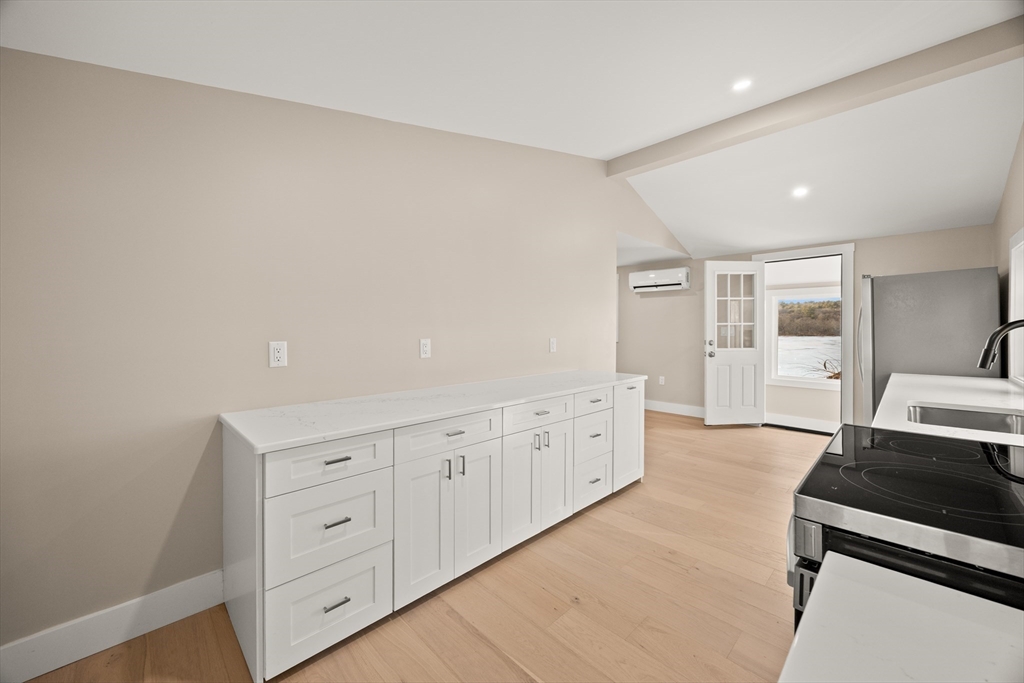 Own a slice of Populatic Pond! Ranch style lakefront home offers an unparalleled blend of peacefulness and adventure. Direct waterfront on Populatic Pond makes every moment here pure enjoyment. Whether you're dreaming of owning a waterfront property, or you are looking for a completely renovated ONE level home, this home has it all. Beautifully done with hardwood floors throughout, tile bathroom, upgraded kitchen with granite countertops and stainless steel appliances, there is nothing to do but move right in. The backyard may be the oasis you've been looking for, awaiting large gatherings or just creating your own peace surrounded by gardens, sitting on the deck, by the water, skating, or ice fishing on the pond. Roof and windows replaced in 2018. So much basement storage with the full walk-out to the backyard, Book your private showing today!