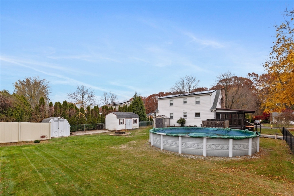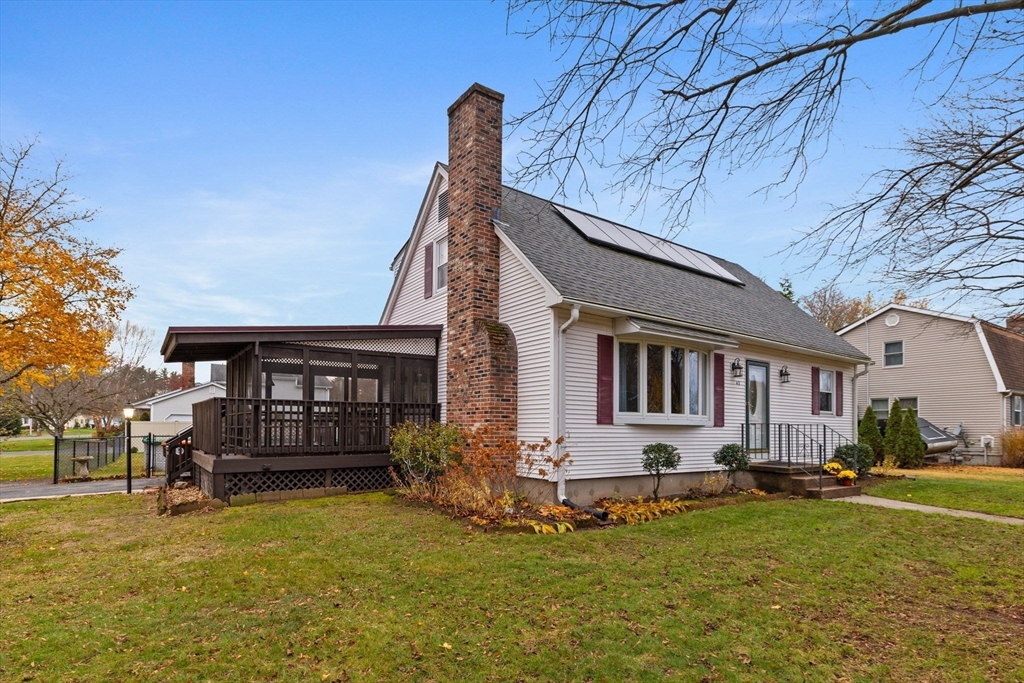 This one has it all! Quintessential oversized cape on a corner lot complete with above ground pool, newer roof, fully fenced in yard, thermopane windows and solar panels to offset your utility costs! Step in to the gorgeous modern eat-in kitchen with SS appliances and custom cabinetry. The gleaming hardwood floors guide you along to the large living room with fireplace and new bay window. An updated full bath on the main level along with the third bedroom create the possibility for one floor living Rounding out the first floor is the additional office space/den with built in shelving. Upstairs you'll find two large dormered bedrooms with built ins and storage galore along with another full bath. The bone dry basement features a partially finished area as well as laundry and updated mechanicals. Outside is an entertainers dream featuring a screened in porch that flows to the pool and the level yard with shed spaces for all of your seasonal items. Book your showing today!