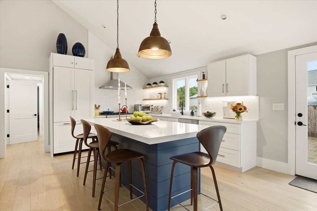 Welcome to this exquisite single-story home, where timeless elegance meets modern convenience, offering a serene yet connected lifestyle. Completely renovated in 2023, this home is situated near Maudsley State Park, local shops, and Route 95, offering a harmonious living experience. The inviting exterior, featuring gentle grayish-blue hues and a charming brick chimney, sets a tone of elegance. Spanning 2,244 sq. ft., including a finished lower level, the home features vaulted ceilings and large windows that flood rooms with natural light. Modern comforts like solar panels and vinyl siding enhance both elegance and energy efficiency. The single-level design includes a first-floor master suite and an inspiring kitchen perfect for contemporary living. The private, large fenced yard with a lovely patio offers an ideal outdoor escape. In a neighborhood where convenience blends with nature, this sanctuary is ready to welcome you home. No showing until the the first Open House
