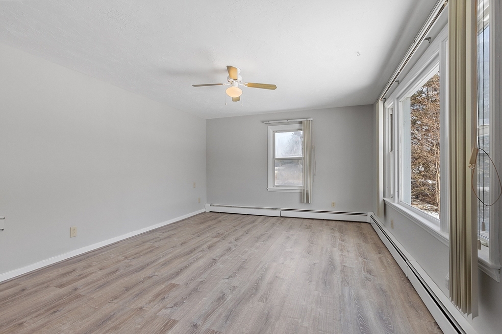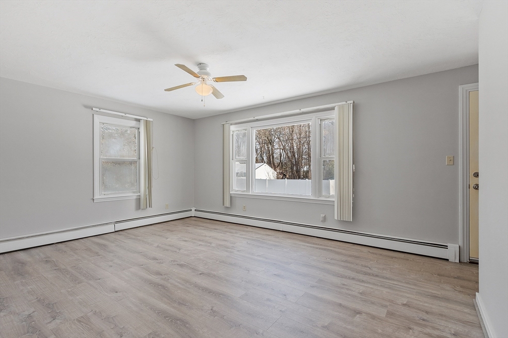 Charming ranch-style home featuring 4 rooms, 2 bedrooms, 1 full bath, a 1-car garage. This move-in ready home boasts newer vinyl plank flooring, a modern wall-mounted natural gas boiler, and fresh interior paint. The spacious eat-in kitchen comes with a new stove and fridge, while the oversized living room offers a picture window and access to a walk-up attic. Two well-sized bedrooms and a full bath with tiled surround, linen closet, and tiled floor add to the comfort. There’s potential for extra living space in the unfinished basement or attic. Enjoy the fun, level backyard, low-maintenance vinyl siding, and convenient location near shopping, Oak Hill Country Club, and commuter routes. A wonderful place to call home—come take a look!.