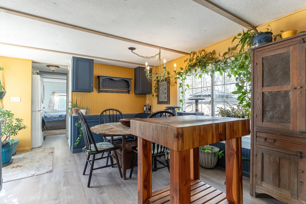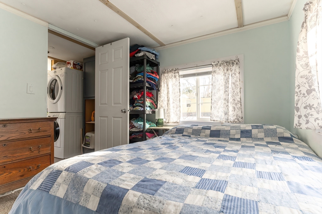 You’ll fall in love the moment you arrive at this updated mobile home with the curb appeal. Ideally located within the park, this home offers peaceful pond views, a spacious yard, and lovely landscaping with mature trees and perennials. The home has been renovated and meticulously maintained. Updates include a new oil tank, new furnace blower motor (2024), new wood laminate flooring in the kitchen, bathroom, and bedrooms, a new storm door with retractable screen, heat tape on pipes wired to an indoor switch, stackable washer/dryer, fresh interior and exterior paint, new tub surround, sealed driveway, additional landscaping, and an updated oversized shed. Inside, you’ll find two bedrooms, an updated bathroom, and a bright kitchen loaded with cabinetry and a walk-in pantry featuring a picture window. Enjoy the deck overlooking the pond.The park share of $16,500 is included. The $350 monthly association fee covers water, sewer, taxes, trash, and road maintenance. A pristine, move-in-ready