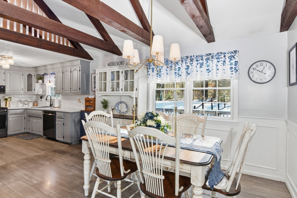 Welcome to this beautiful and thoughtfully updated Cape-style home. Just 6 mls from the Middleboro/Lakeville commuter rail & 2mls from rt 495 offering the perfect balance of convenience, comfort & privacy. Step inside to find a warm and welcoming open floor plan that flows effortlessly from room to room. The bright and airy fireplaced living rm with open beamed cathedral ceiling complemented by newer Andersen windows that fill the space with natural light while offering energy efficiency and year-round comfort.The kitchen has been thoughtfully updated over the past 2 years w/all new appliances, ample counter space, and plenty of cabinetry for storage. Whether you’re preparing a family meal or hosting a casual get-together, this kitchen is as functional as it is stylish. Set on 2.13 acres complete with 2 decks/ patio/ 2-year young above ground pool/ fenced in and ready to entertain or just sit back and enjoy the privacy and quiet offered in this lovely country setting.