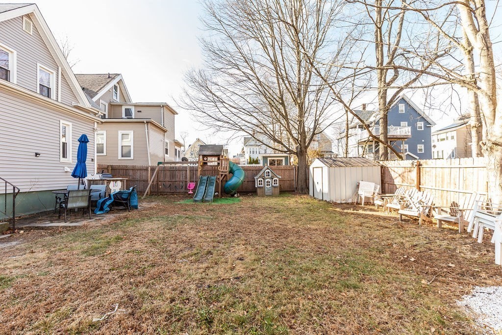 Beautifully updated three bedroom starter home that is move in ready and waiting for its next owner. The kitchen is the heart of the home with stainless steel appliances granite countertops and a striking center island with the stove built in perfect for everyday living and entertaining. Bright cabinetry first floor laundry a pantry and clever hidden storage add function throughout. The dining area offers recessed lighting and flows directly off the kitchen creating an open spacious feel. The first floor bathroom has been fully remodeled with stylish tile and a built in niche. Upstairs all three bedrooms feature hardwood floors and ample closet space. The fenced backyard is ideal for summer barbecues relaxing nights or entertaining and the shed and swingset will stay. Located on a bus line steps to the T station minutes to highway access shopping schools and parks all within walking distance. At this affordable price how can you afford to not take a look! call today to book your Appt!