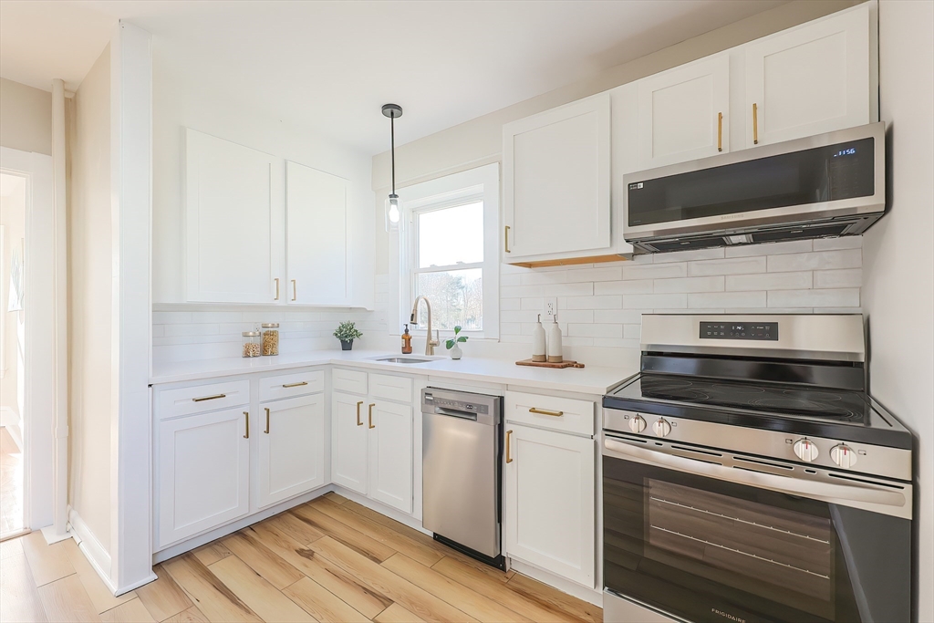 Move right in to this beautiful home! Gorgeous kitchen with shaker cabinets, quartz counters, and new stainless appliances. Updated bathrooms, GLEAMING hardwood floors, freshly painted interior, 2 yr old roof, updated heating system, vinyl siding, vinyl windows, all of this makes for low maintenance and peace of mind. The master bedroom features a spacious walk-in closet that is perfect for many uses. Enjoy the beautiful back yard with peaceful meadow view that is perfect for entertaining or just enjoying the outdoors. Very convenient location that is just 5 mins to 195. Seller paying for 1 yr home warranty from American Home Shield if u close in 30 days or less.
