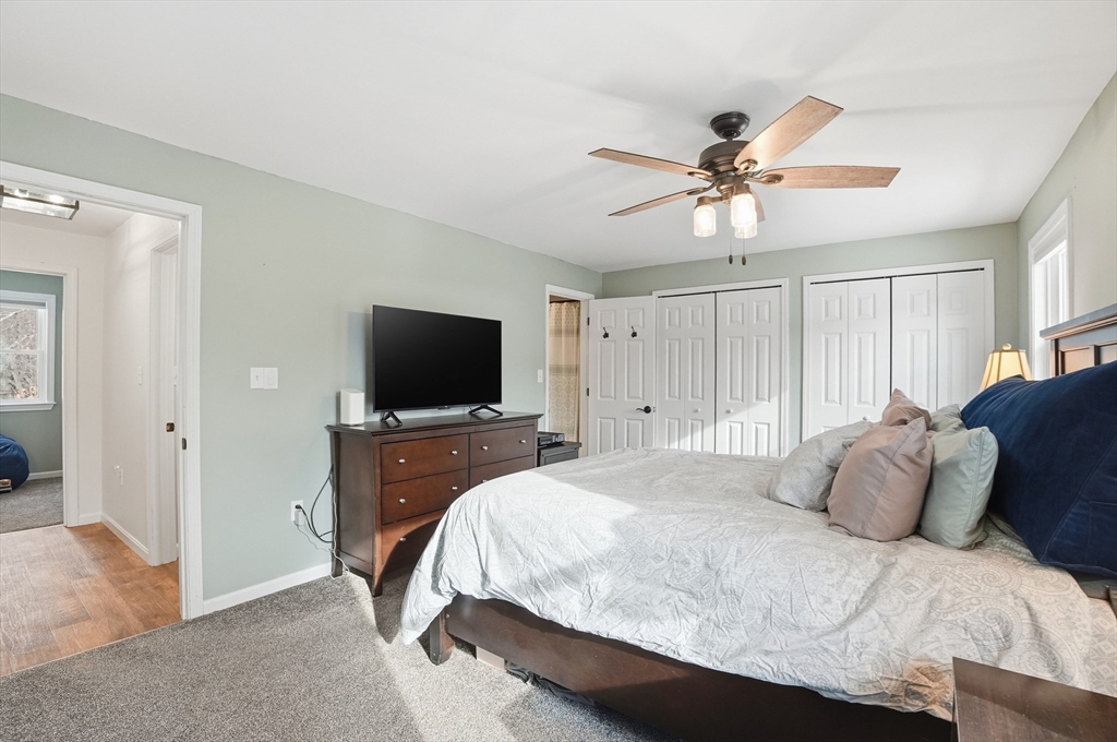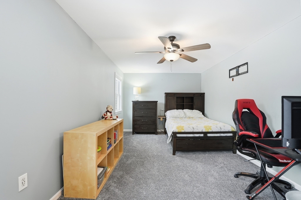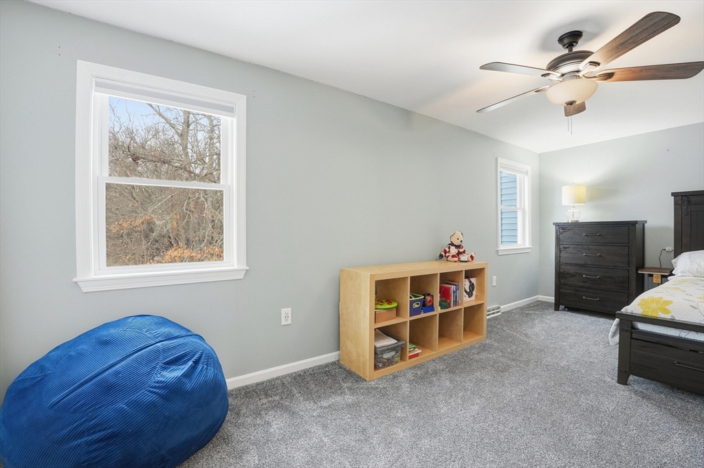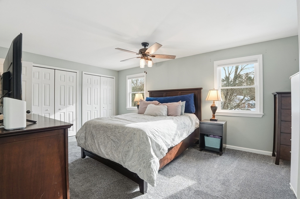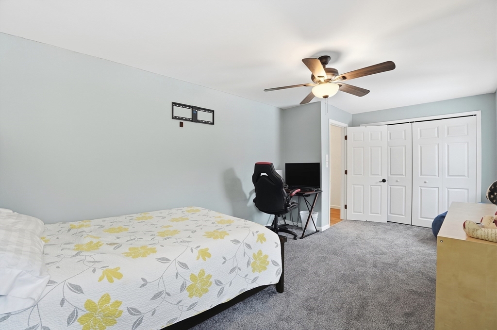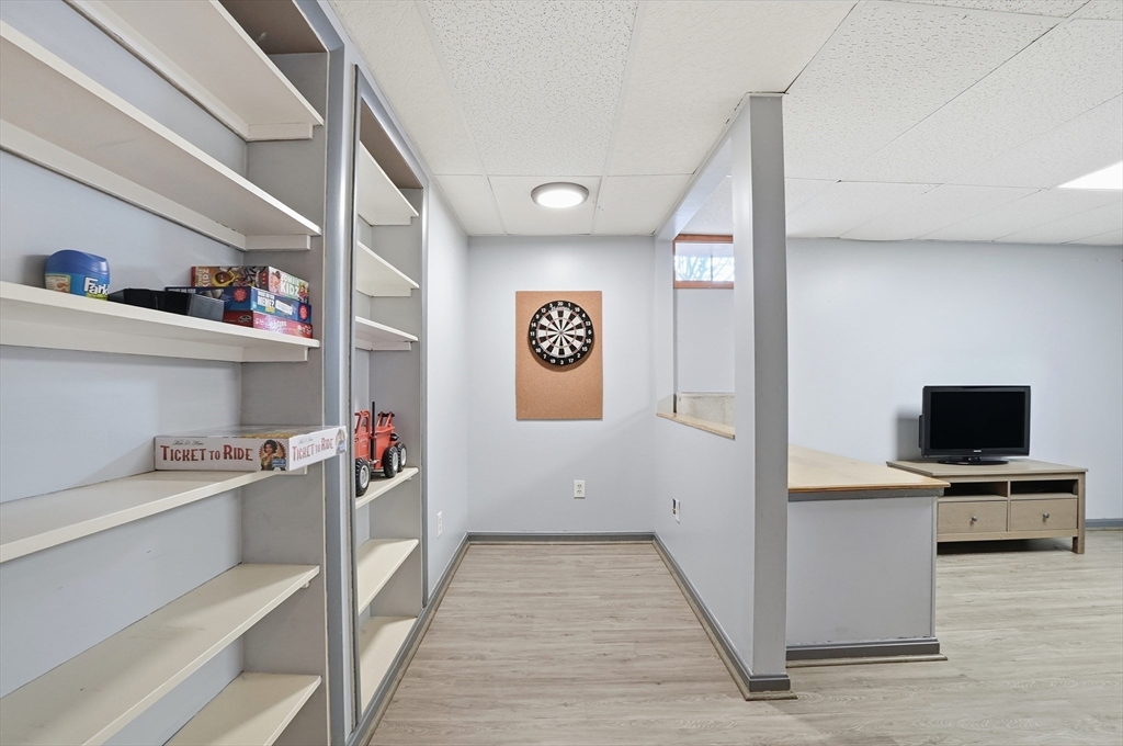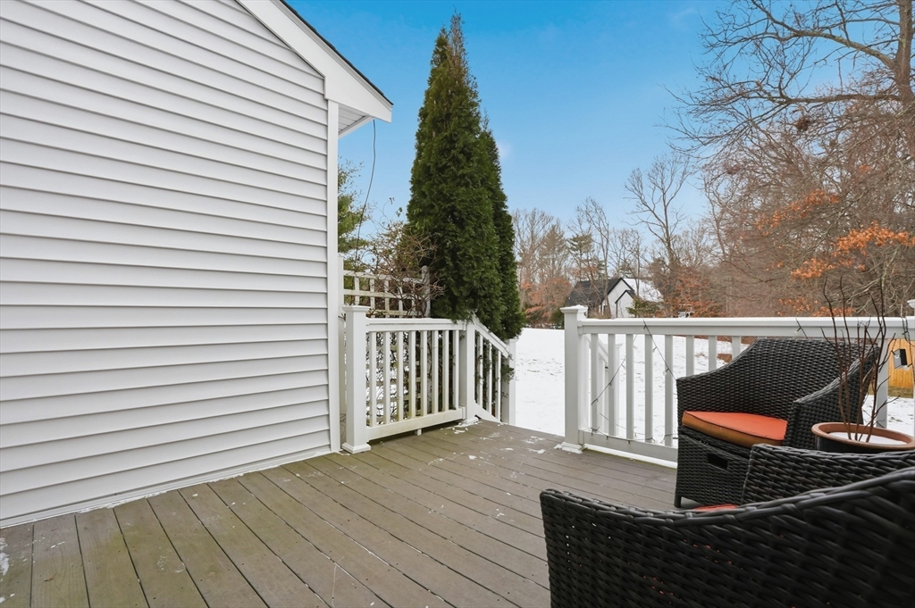 Welcome home to this 2 bedroom townhouse offering the perfect blend of warmth and modern updates. Step inside to a sun-filled living room with gleaming floors and a cozy wood-burning fireplace. The open-concept kitchen and dining area is ideal for everyday living and entertaining, featuring granite countertops, stainless steel appliances, peninsula seating for three, skylights, exposed wood beams & a pantry. A slider leads to the back deck and spacious shared yard. Upstairs, you'll find a large primary bedroom with two closets and direct full bath access. A second generously sized bedroom completes this floor. The finished basement provides flexible living space with built-ins, recessed lighting, a game area, laundry + storage, and bulkhead access. Major updates: (2025) vinyl siding, upstairs windows, front steps & bulkhead (2024) new roof. Easy Highway access and close proximity to the Xfinity Center & Wheaton College.