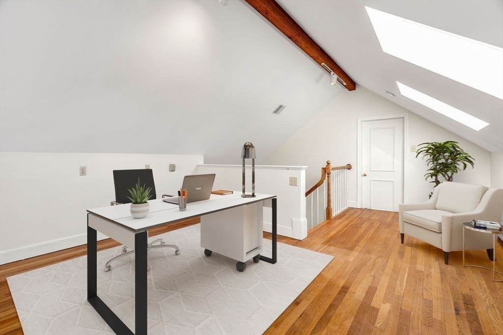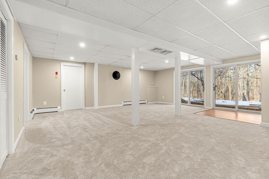 Lovingly cared for by its original owner, this custom-built ranch is nestled at the end of a quiet street with just five homes. Set on a picturesque 2-acre lot, the property offers privacy and a truly park-like setting. A welcoming foyer provides an easy flow into the formal living room, enjoy vaulted ceilings and a wood-burning fireplace. French doors flank the living room, one side leading to the open-concept kitchen, dining room and den, with a pellet stove, dramatic ceiling height, and oversized windows that fill the space with natural light. The loft overlooks the den- an ideal spot for a home office or creative retreat. The main level features a spacious primary ensuite with a walk-in closet, a 2nd bedroom, a full hallway bathroom, and a convenient laundry room. The newly renovated walk-out lower level offers almost 1000 square feet of finished space, complete with sliders to the backyard, a 1/2 bath and an additional room with bedroom potential—supported by a 4 bedroom septic.