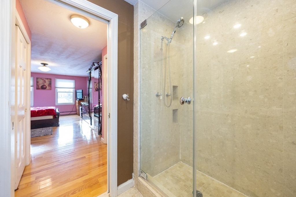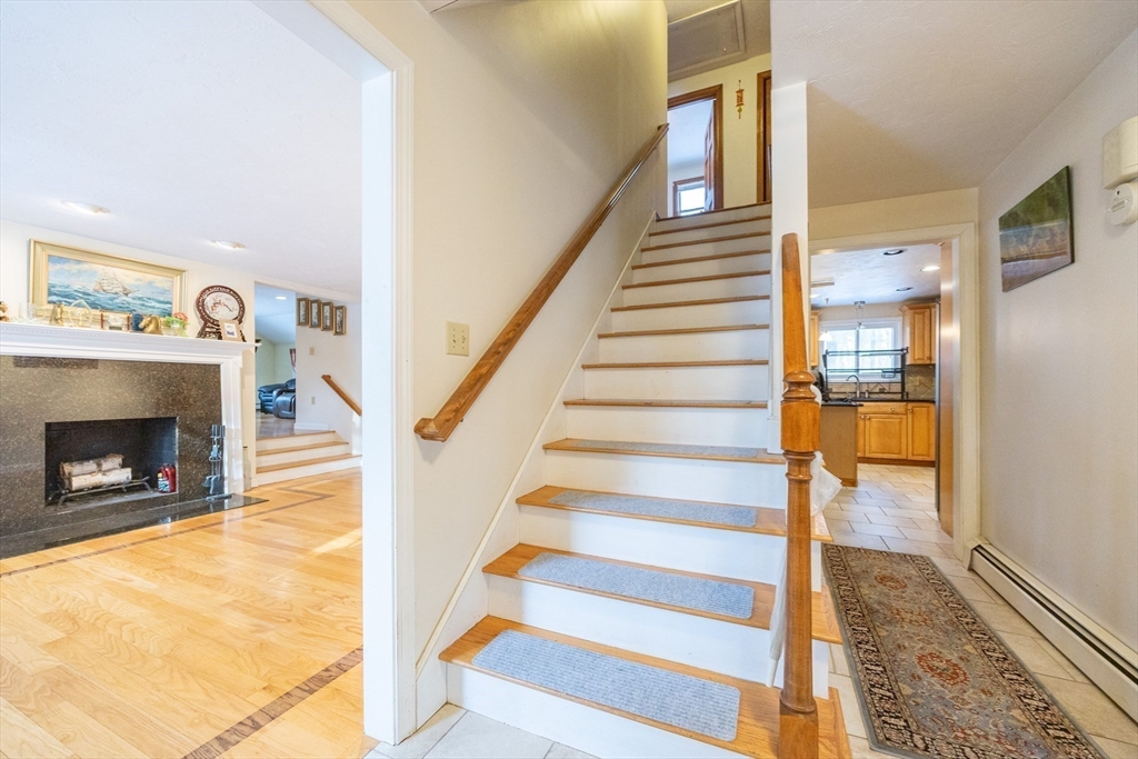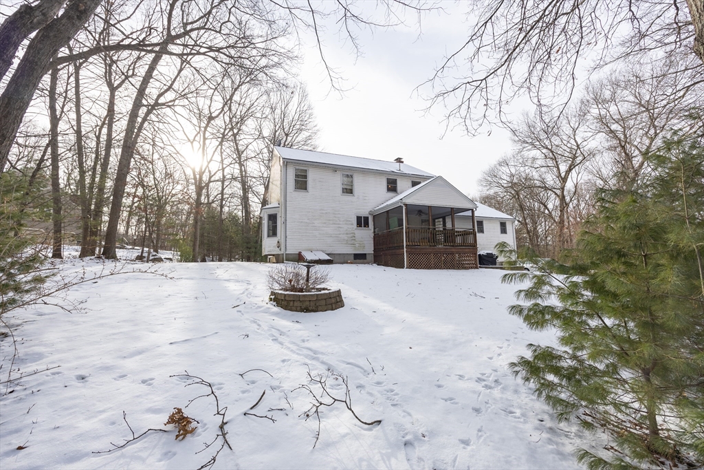 Tucked away at the end of a quiet cul-de-sac in one of Bellingham’s most coveted neighborhoods, this elegant four-bedroom Colonial offers refined living on over 1.5 private acres. The custom maple eat-in kitchen is thoughtfully designed with tile flooring, a center island, ample cabinetry, and seamless access to a three-season screened porch—ideal for entertaining or enjoying peaceful mornings overlooking the private grounds. Rich hardwood floors flow throughout the home office, formal dining room, living room, and expansive family room highlighted by vaulted ceilings and abundant natural light. A first-floor bath with laundry and direct access to an oversized two-car garage adds everyday convenience. The second level features four spacious bedrooms, including a serene primary suite with hardwood floors and a spa-inspired bath showcasing a custom tile shower. Offering exceptional privacy, timeless craftsmanship, and a premier setting, this home is truly a rare opportunity.