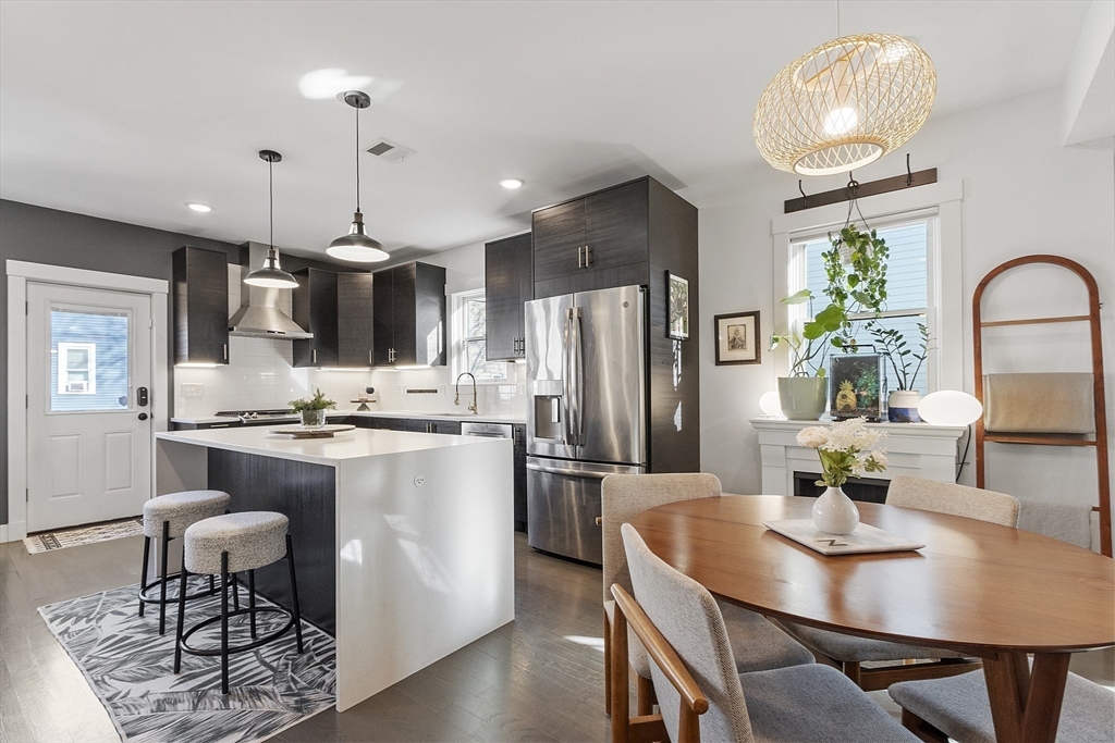 Sky-high living meets urban convenience in the heart of Winter Hill. This renovated 3-bedroom, 2-bath condominium offers a flexible layout topped by a private primary suite with vaulted ceilings and direct access to a private rooftop deck—an everyday outdoor escape above the city. The main living level features an open-concept design where the living room, dining area, and kitchen flow seamlessly for comfortable daily living and entertaining. Two additional bedrooms and a versatile office or bonus room provide ideal flexibility for remote work or guests. Renovated in 2018, the home is move-in ready with modern finishes and updated systems throughout, plus one off-street parking space for added ease. Enjoy quick access to the Somerville Community Path and Gilman Square Green Line station, along with Winter Hill cafés, restaurants, and neighborhood amenities just moments away.