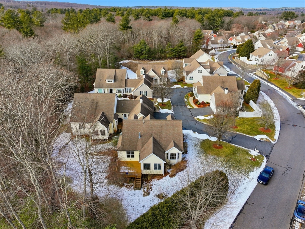 Beautifully designed 2 bed, 2.5 bath lofted townhome nestled within the highly desirable Cookingham Greene 55+ community in Ashland, MA. This light filled home offers an open concept main level with soaring ceilings & a seamless flow between the kitchen, dining & living areas ideal for everyday living and entertaining. Freshly painted & recarpeted this is a home that is perched on a pretty corner lot with an abundance of windows, gas FP, airy sunroom plus a modern kitchen with stainless steel appliances and pretty dining area. A spacious 1st floor primary suite features a walk in closet, full bath w/ double vanity, shower and jacuzzi tub. Upstairs the 2nd BR provides comfort and privacy for guests. Off of the 2nd BR is a full bath w/shower & a versatile loft offering flexible space for exercise or den. Enjoy your own laundry room equipped with W/D and the convenience of the attached double garage. Large unfinished lower level walks out to the yard. Can be finished or used for storage.