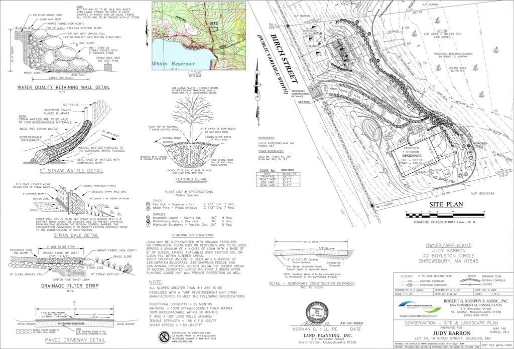 2 lots that total over 4 acres for sale. 19 Birch St and 21 Birch St now available! These private 4+ acre parcels on Birch Street features approximately 500 feet of frontage and has been thoroughly prepared to support near-term construction. Recent (2023) engineering and approvals include completed perc and soil testing, septic system design, stormwater management and landscape plans, and a proposed (2) 52’ x 36’ three-bedroom home footprint with garage and walk-out basement. Updated survey work is in place, with lot lines, driveway alignment, and proposed building envelope clearly staked on site. An efficient opportunity for builders and developers seeking to reduce entitlement timelines and carry costs.