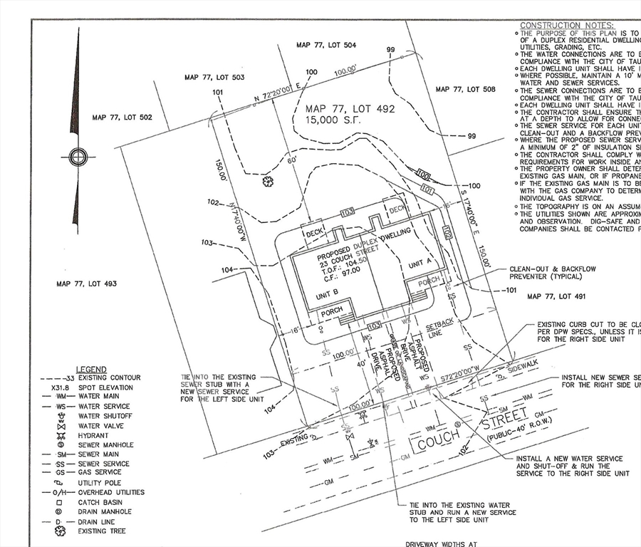 This spacious Duplex is ready for your granite, lighting and flooring selections. The One car garage complete with opener is 14' x 26'. You will appreciate the Walk Out basement leading to a very nice and big back yard perfect for those summer cookouts and gathering around the Fire Pit. This duplex is set in one of Taunton's nicest neighborhoods and the Farmer's porch perfect for sitting out on those Summer nights. Full landscaping will be done in the Spring when weather permits and will include a lawn irrigation system with a water reduction meter. Master Insurance for the building shared with attached unit, 50-50. OFFER DEADLINE TUESDAY, JANUARY 13 AT 7:00 P.M.