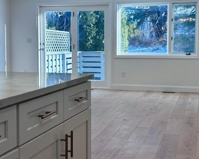 Fall in love the moment you walk through the door of this fully renovated townhouse-style condo in Cranes Landing. Warm, open, and thoughtfully designed, the main level sets the tone w/engineered Hardwood floors, a cozy fireplace, and a spacious Living Room that opens to a private back porch, perfect for those quiet mornings, relaxing after a busy day, or effortless entertaining. The kitchen steals the show w sleek upgraded counters that flow into a full-height backsplash, modern cabinetry, and a center island built for function and style. Upstairs, two inviting bedrooms feature plush new carpeting and ample closet space, alongside a beautifully tiled full bath. The finished Lower Level offers flexible bonus space for work, play, or relaxation. Two assigned parking spaces are just steps from the front door. Completely updated and move-in ready, this home doesn’t just check boxes, it feels right.