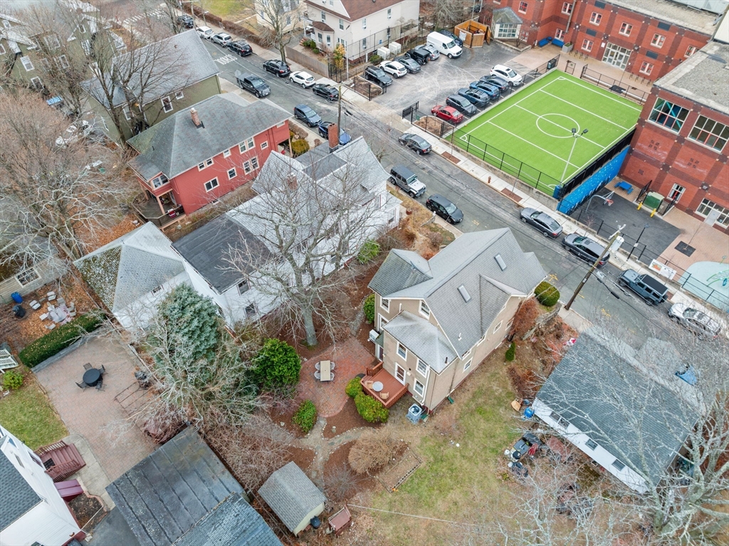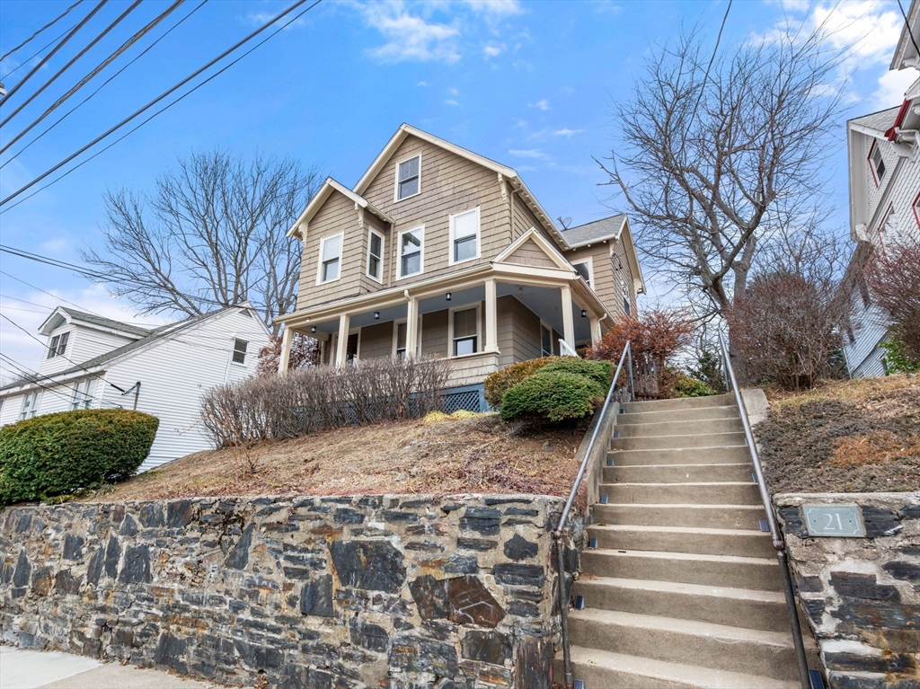 Well-maintained home in West Somerville near Tufts Univ, Teele & Davis Sq, offering a flexible layout across multiple finished levels w/original architectural details & recent system upgrades. The main living level features high ceilings, stained glass details, & an open kitchen/dining area w/stone counters, SS appliances, breakfast bar, & French doors opening to the living room. The home includes 4 BRs + office, 1 full & 1 half BA. Finished space on the upper level enhanced by skylights. Major improvements (2022–2025) include 200-amp electric service upgrade, high-efficiency ducted heat pump system serving 1st & 2nd floors, Mitsubishi mini-splits on the 3rd floor, & heat pump H/W heater. Add'l features include covered front & side porch, brick patio, garden area, large storage shed, & full walk-out basement w/ laundry, workspace. Convenient access to shops, parks, multiple bus routes, public school across the street, and Red & Green Line access less than a mile away.