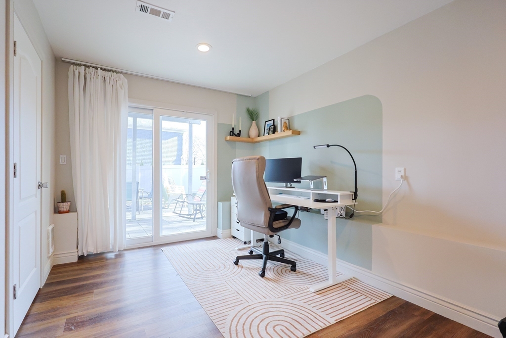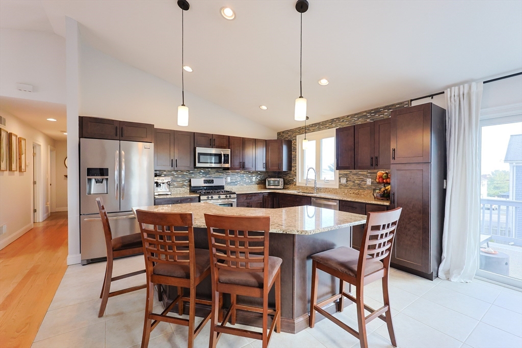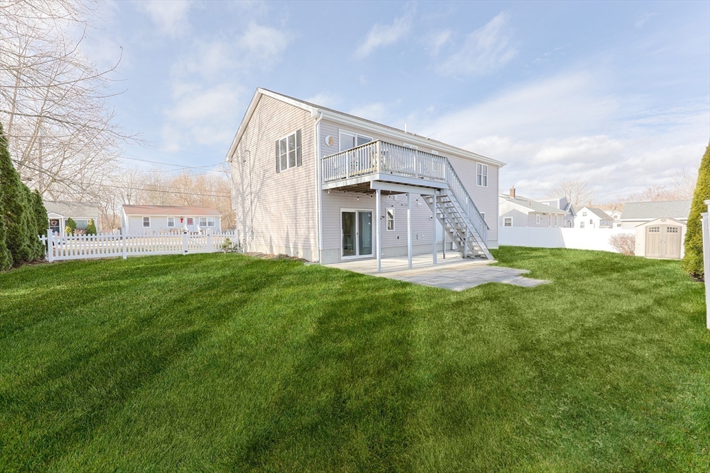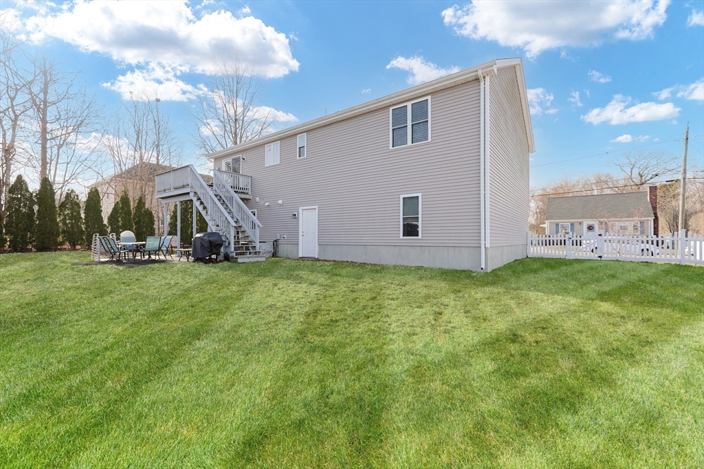 Well-loved Split Level in the town of South Dartmouth. This 3 bedroom, 3 bath home is located on a quiet side street. Modern, open concept floorplan is great for entertaining family and friends. The kitchen has stainless steel appliances, large island and granite countertops. The dining area has sliders to the backyard deck. The adjacent living room has lots of natural sunlight and soaring cathedral ceilings. Hardwood floors. Laundry located on the main level. The bedroom suite has a primary bathroom with dual sinks. Secondary bedrooms are bright and airy. Multipurpose family room has an office space, TV area, wet bar, half bath and sliders to the patio. Lots of closet space. Over-sized two car garage, central A/C and gas heat. Move in and enjoy the bucolic backyard.
