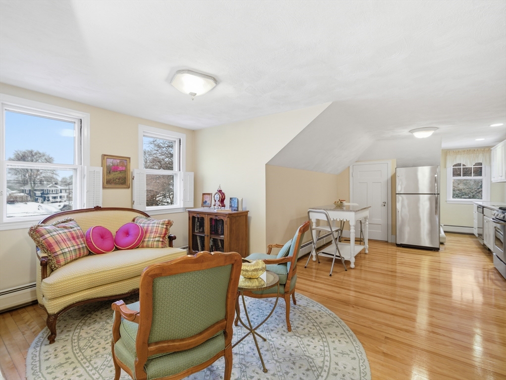 Warm, charming, & spacious top-floor condo in a stunning, gracious multi-unit home. From the moment you enter, you’ll appreciate the open floor plan, abundant closet space, & natural sunlight throughout. The modern stainless-steel kitchen with quartz countertops opens seamlessly to a gracious dining area, sitting area, and living rm perfect for everyday living. Beautiful hardwood floors enhance the charm. As a bonus, there is a versatile guest bedroom that can be used as office & storage space. Enjoy free use of laundry facilities in the basement. There is plenty of off-street parking, and a huge backyard ideal for outdoor enjoyment. Condo fee includes heat & hot water! Minutes to 495, downtown, parks, walking paths, along the river, restaurants, and train station. All this located in a quiet area of the building with no one above or next to you. This one-of-a-kind unit is truly a place you’ll want to own!