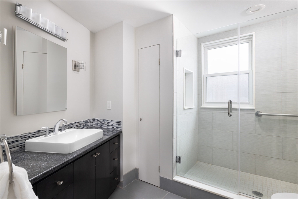 Ideally situated in Newton Centre, this beautifully updated Victorian-era residence blends timeless character with modern comforts. Featuring a steeply pitched roofline, the home welcomes you with a charming porch that opens into a gracious foyer. From there, step into a spacious dining room and an oversized living room, both adorned with original moldings. The renovated eat-in kitchen, with custom cabinetry, opens to a deck overlooking a lush, landscaped backyard with mature plantings. An elegant staircase leads to the second floor comprised of a primary bedroom, three additional bedrooms, and a tastefully updated bathroom. The third floor offers two more large bedrooms, including one with a Palladian window, and an additional full bathroom. Enhancements include new roof, newer windows, gleaming hardwood floors, central air conditioning, and an electric car charger. Conveniently located near the T, major commuter routes, top-rated elementary schools, and vibrant shops and restaurants.