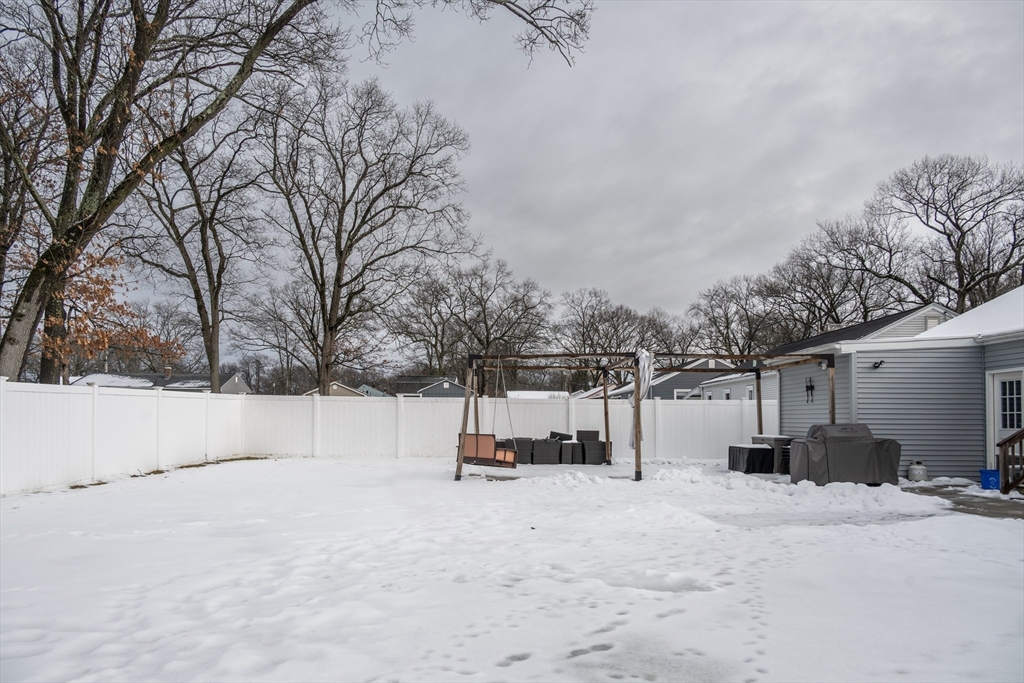 Welcome home to this beautifully updated ranch in Chicopee, offering easy one-level living with thoughtful improvements throughout. Sun-drenched living spaces fill the home with natural light, creating a warm and inviting atmosphere accented by a cozy fireplace and hardwood floors in all three bedrooms. The bright eat-in kitchen features granite countertops and a slider that opens to the backyard, making indoor-outdoor entertaining effortless. The expansive finished basement offers incredible bonus space with a half bath and cedar closet—perfect for a media area, home office, workout space, or guest use. Outside, enjoy a fully vinyl-fenced yard with patio and pergola, ideal for summer gatherings or relaxing evenings. An attached two-car garage adds everyday convenience. Major updates include new siding, patio, fence, and water heater in 2020, plus new flooring in the bathroom, kitchen, and hallway and brand-new shower in 2025. A move-in-ready home ready for its next chapter.