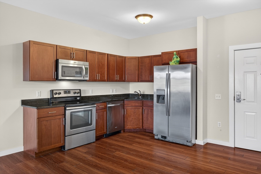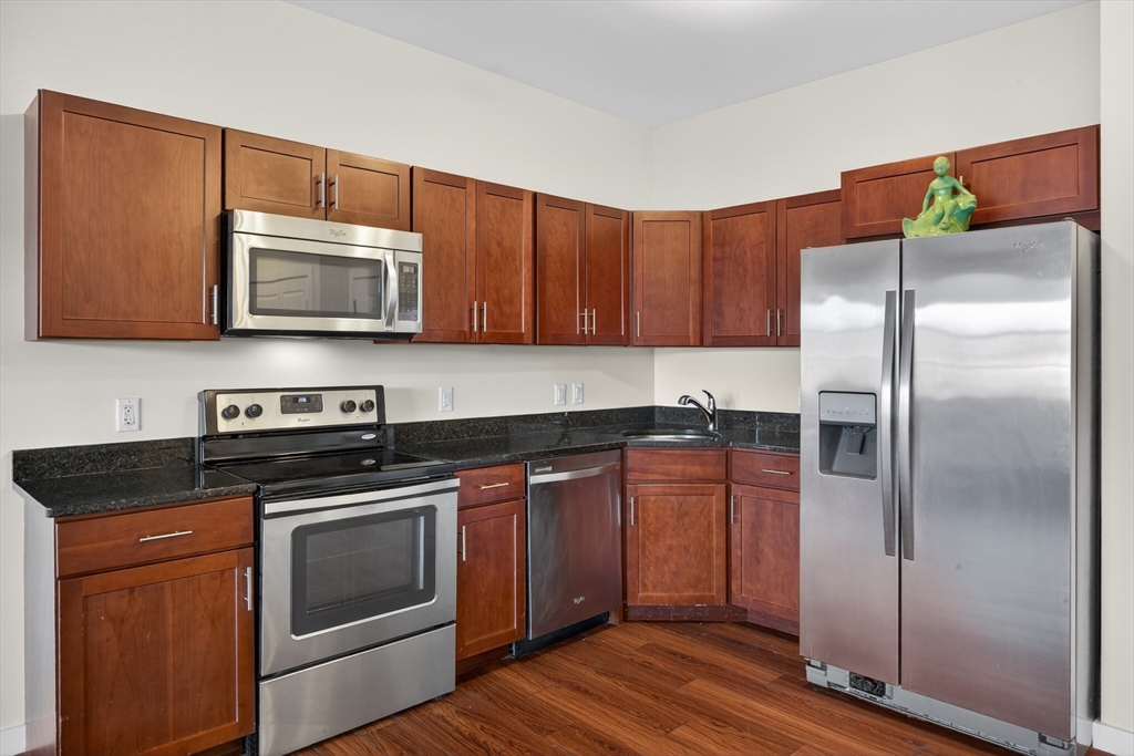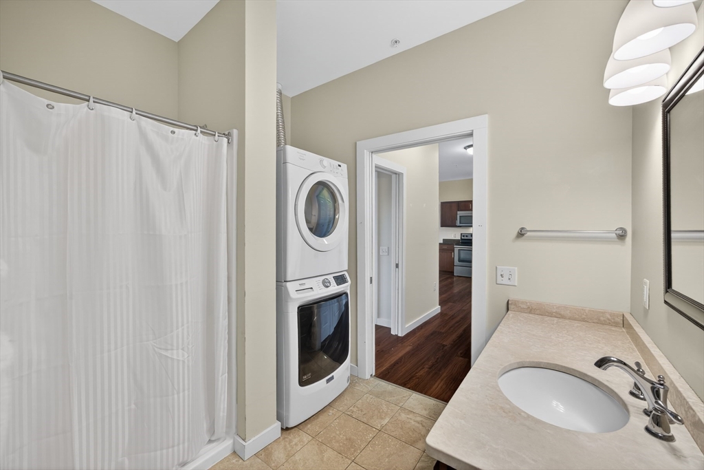 Enjoy Provincetown living in this sizable one bedroom unit at Seashore Point, Provincetown's 55+ community. Located a short walk to Commercial Street, the unit features cherry laminate flooring throughout, with Travertine stone floor and vanity top in the bathroom. The sizable kitchen features Absolute Black countertops and stainless appliances. A vented full stack washer/dryer is included. Ample closet space. Views of Alden Street with great morning light. Steps to the elevator and a short walk to the common dining room. Condo fee $953 per month with a $250 per month concierge fee. This includes heat, hot water, electricity, fitness room, front desk attendant from 8AM - 11pm and much more. Basement storage cage based on availability. Outdoor parking is based on availability. Garage space if available for a one time fee of $5,000 and $275 per month. Pets allowed. Don't let this one get away.